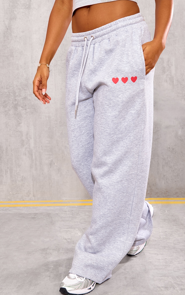 PrettyLittlething Grey Marl Heart Dress Wide Neg Joggers