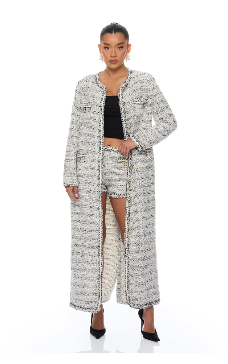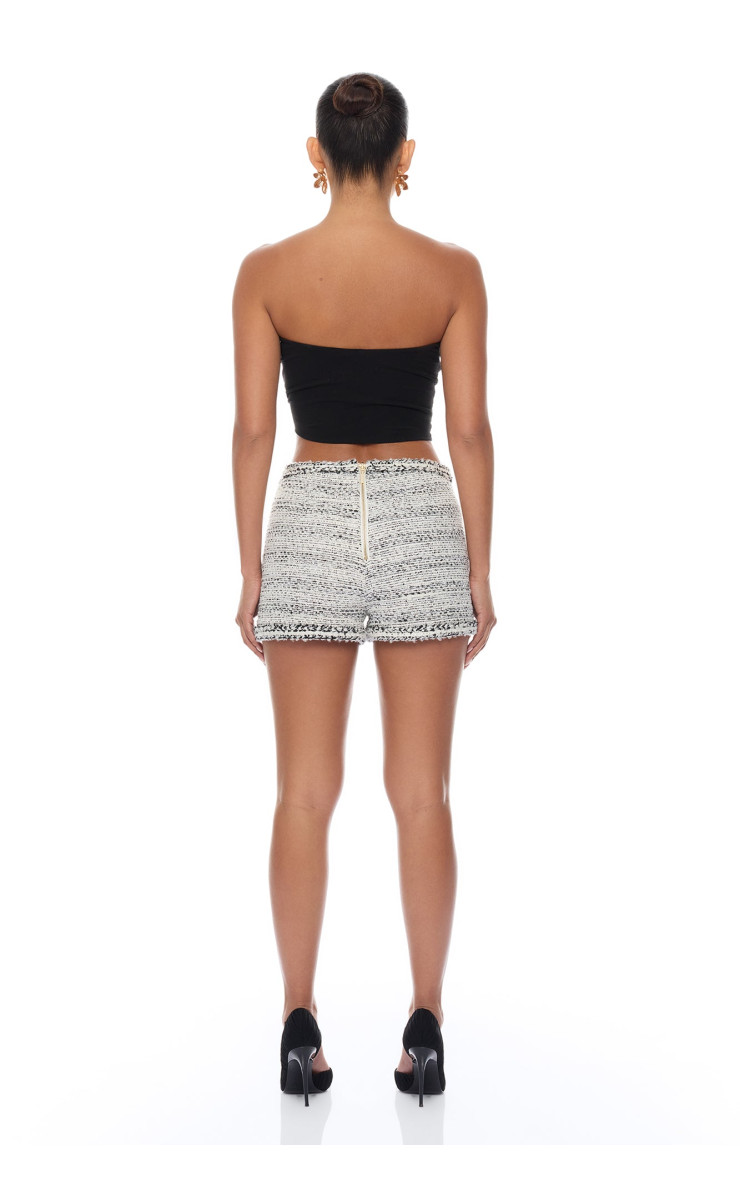 Елегантність та вишуканість в кожній деталі! Ці шорти "Каела" з твіду прикрашені витонченою вишивкою. Класичне поєднання чорного та білого кольорів робить їх універсальними для створення стильних образів.