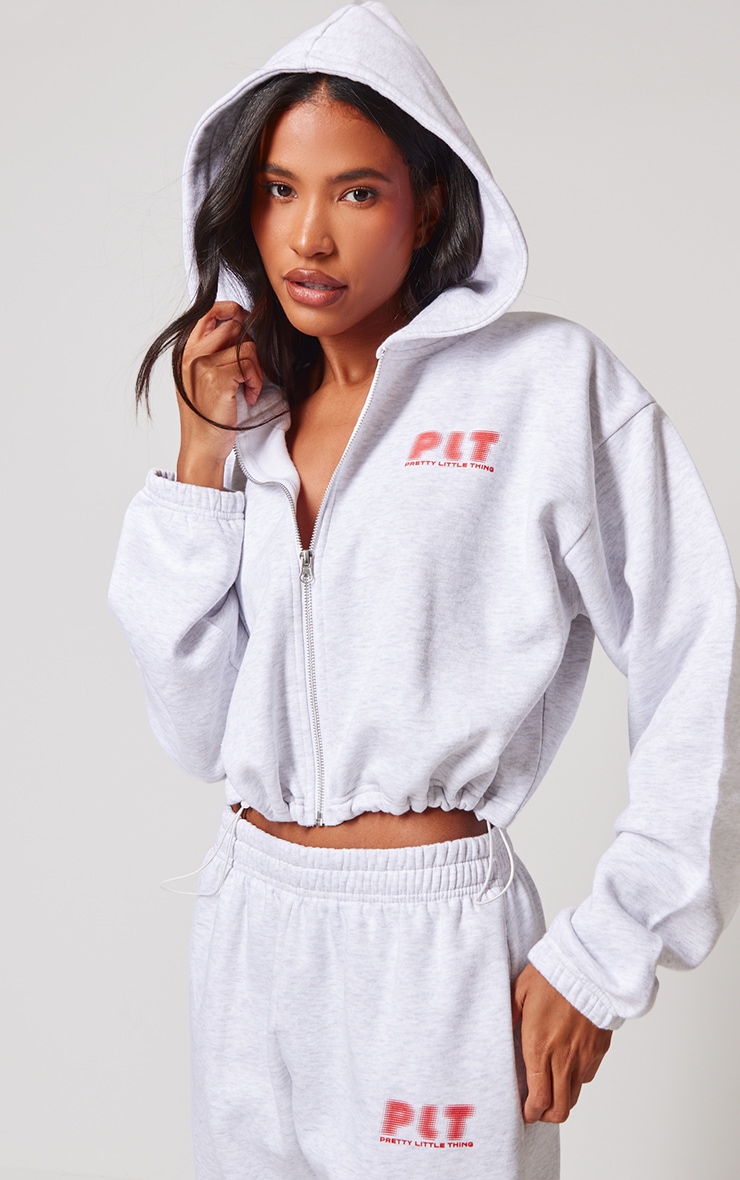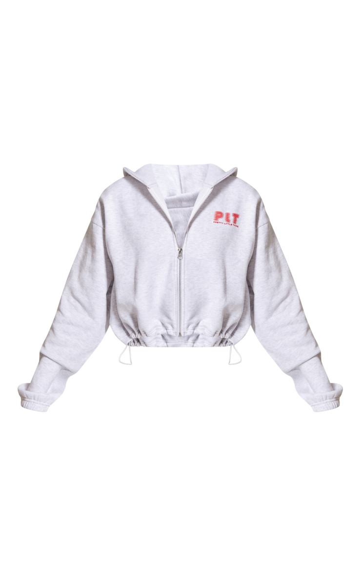 PrettyLittlething Grey Marl Elasticated Hem Zip up толстовка