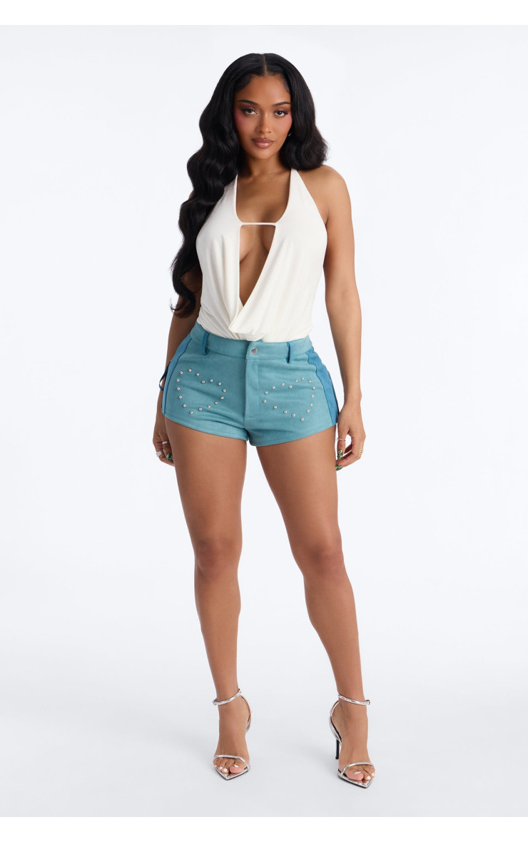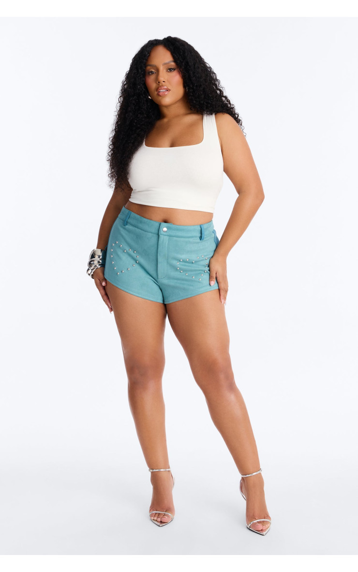 Шорти "Ковбойська красуня" з бахромою та заклепками з еко-замші - Бірюзовий