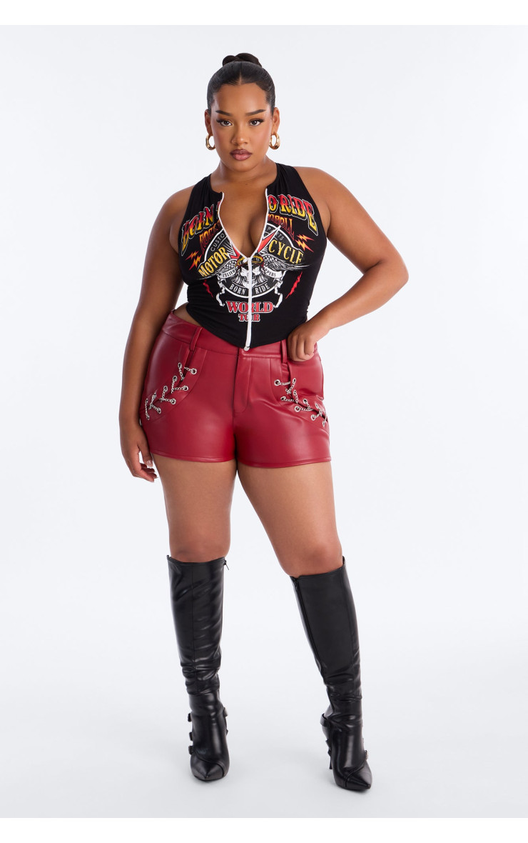 Шорти "Шукай та знищуй" з еко-шкіри - Червоний