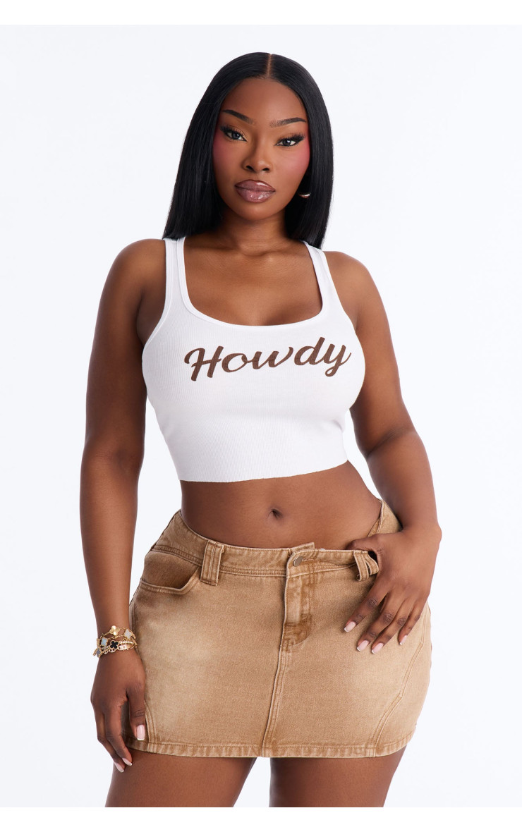 Стильний кроп-топ "Howdy", що випромінює невимушену чарівність. Ця модель чудово доповнить ваш повсякденний образ, додаючи йому легкості.