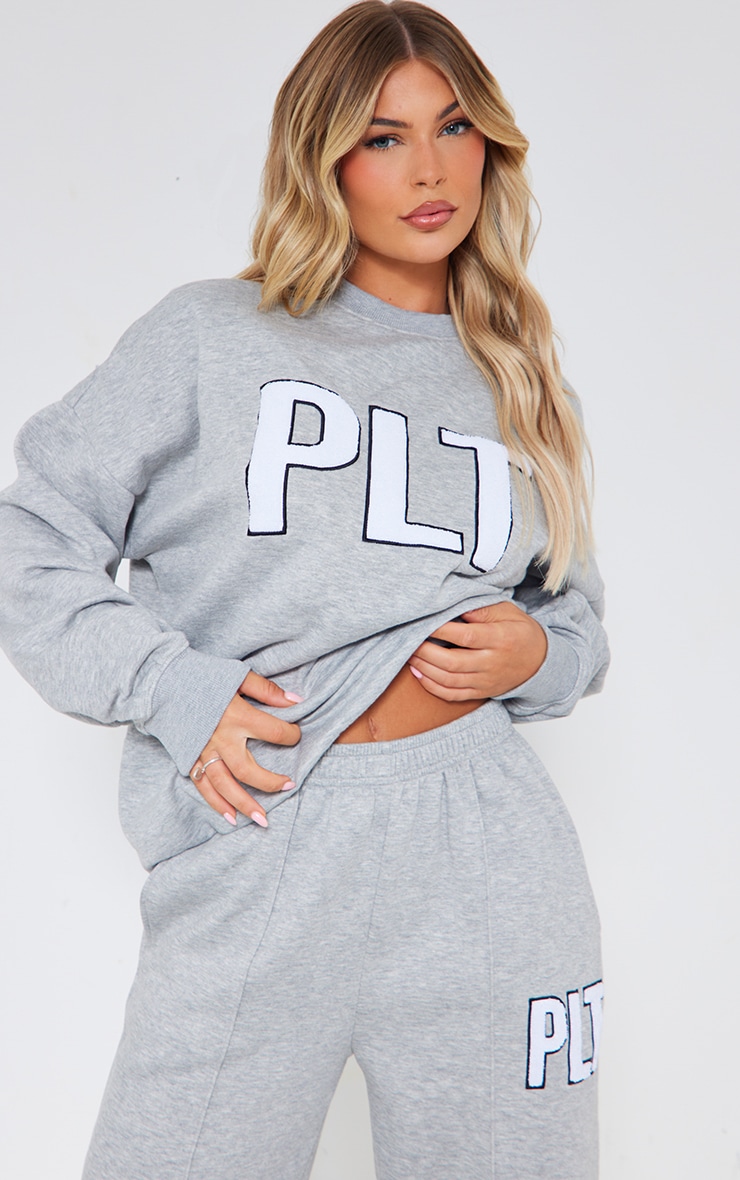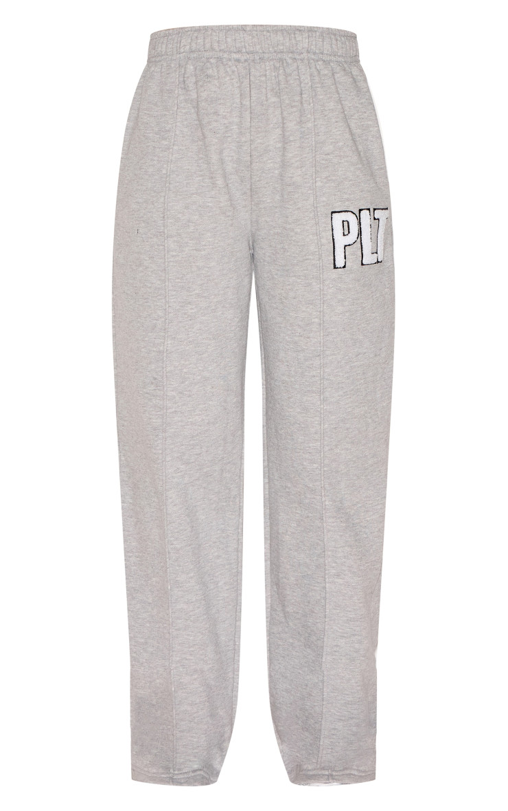 PrettyLittlething Ash Grey Borg Applique Applique Wide Neg Jogger