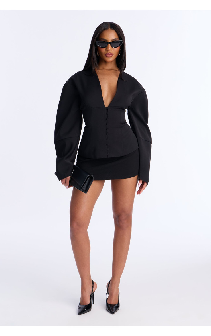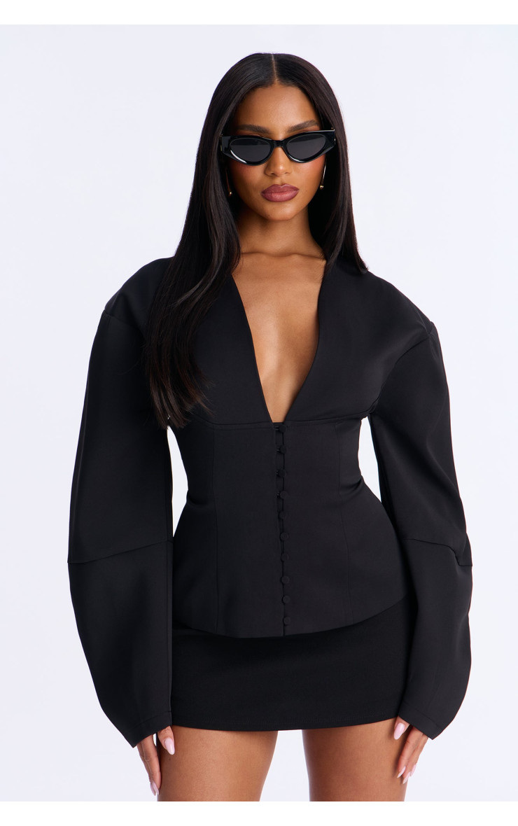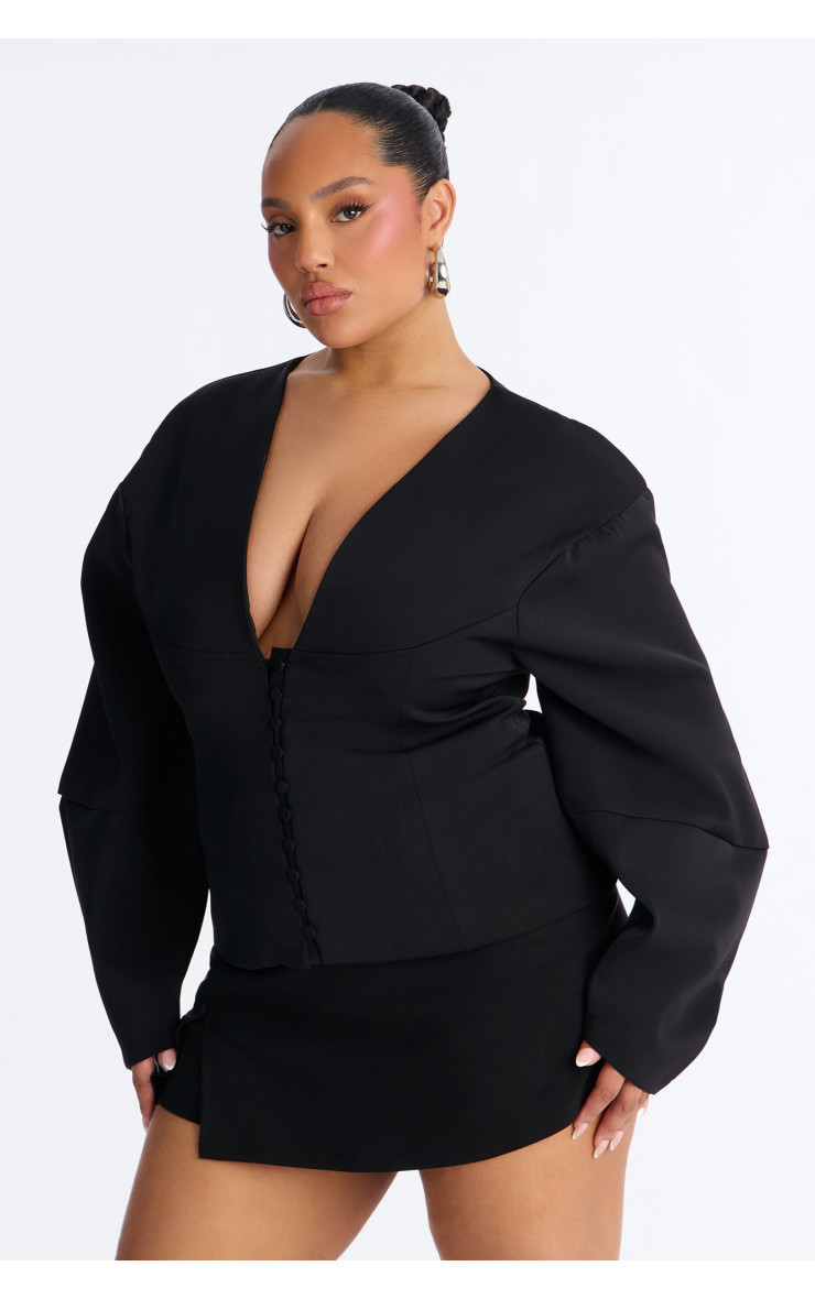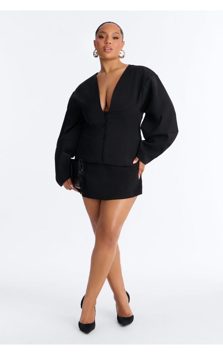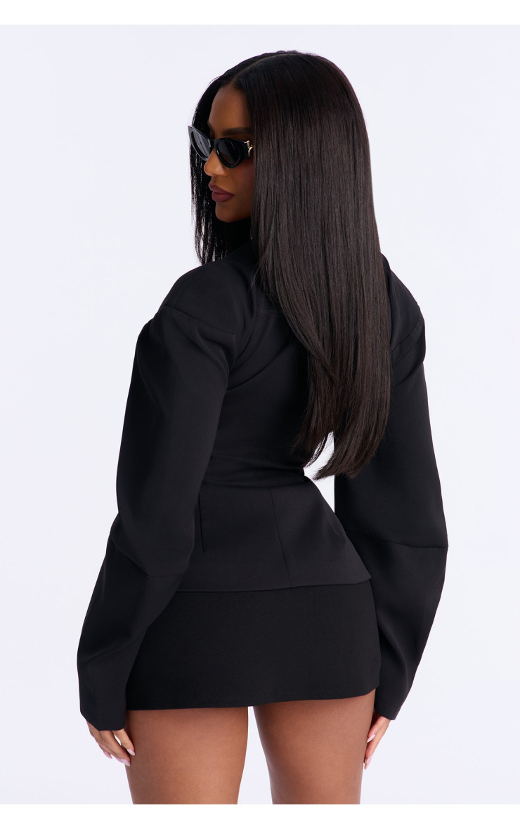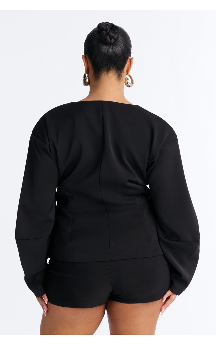 Блуза "Off Duty Boss" з об'ємними рукавами та ґудзиками - Чорна
