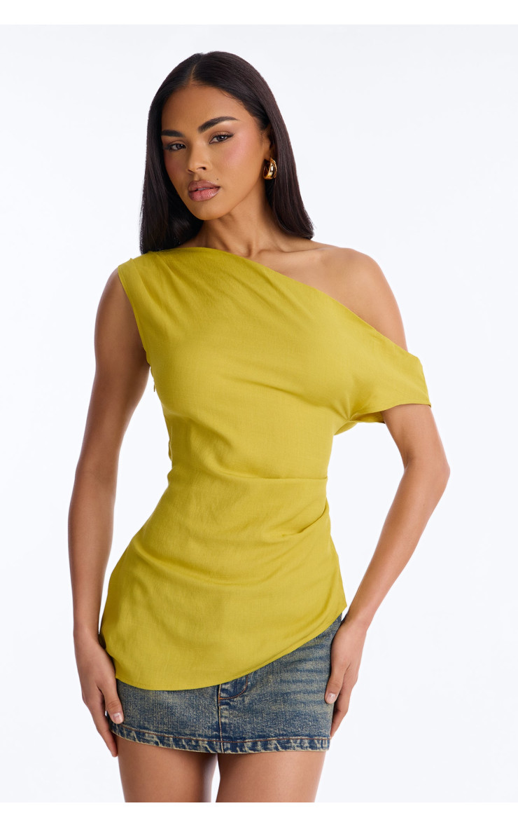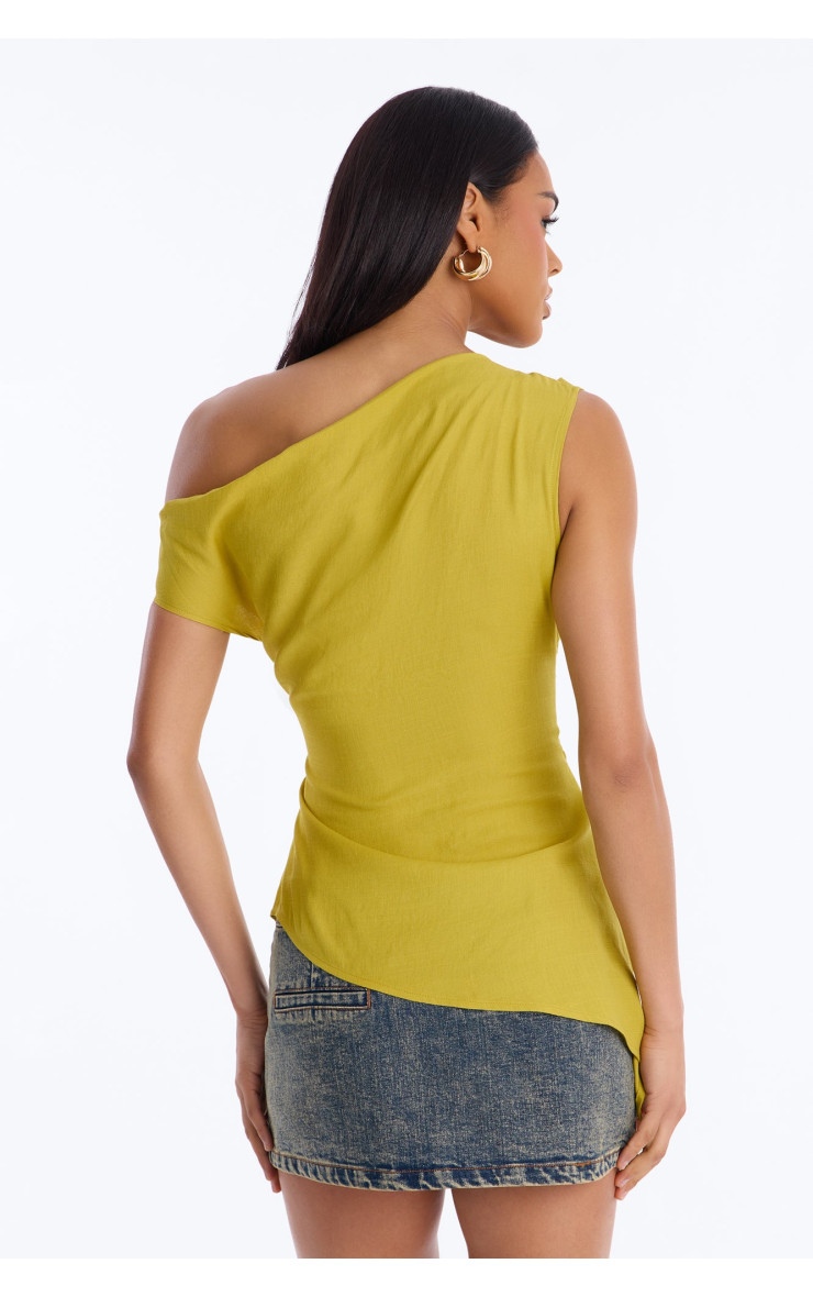 Лляний топ "Cutie With A Duty" з одним плечем - Шартрез