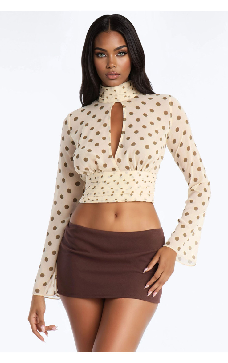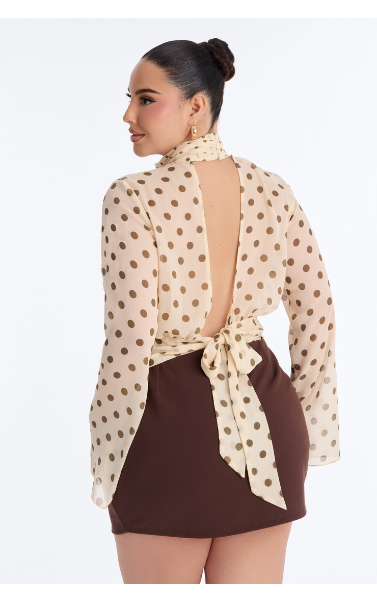 Шифоновий топ "Flirty Polka Dot" із зав'язками ззаду - Кремовий/Комбі
