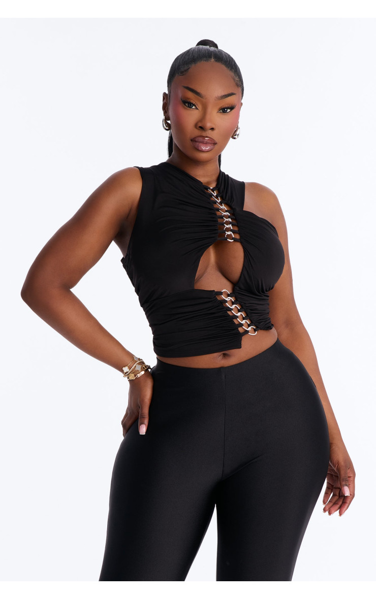 Топ "Power Link" з вирізом та ланцюгом - Чорний