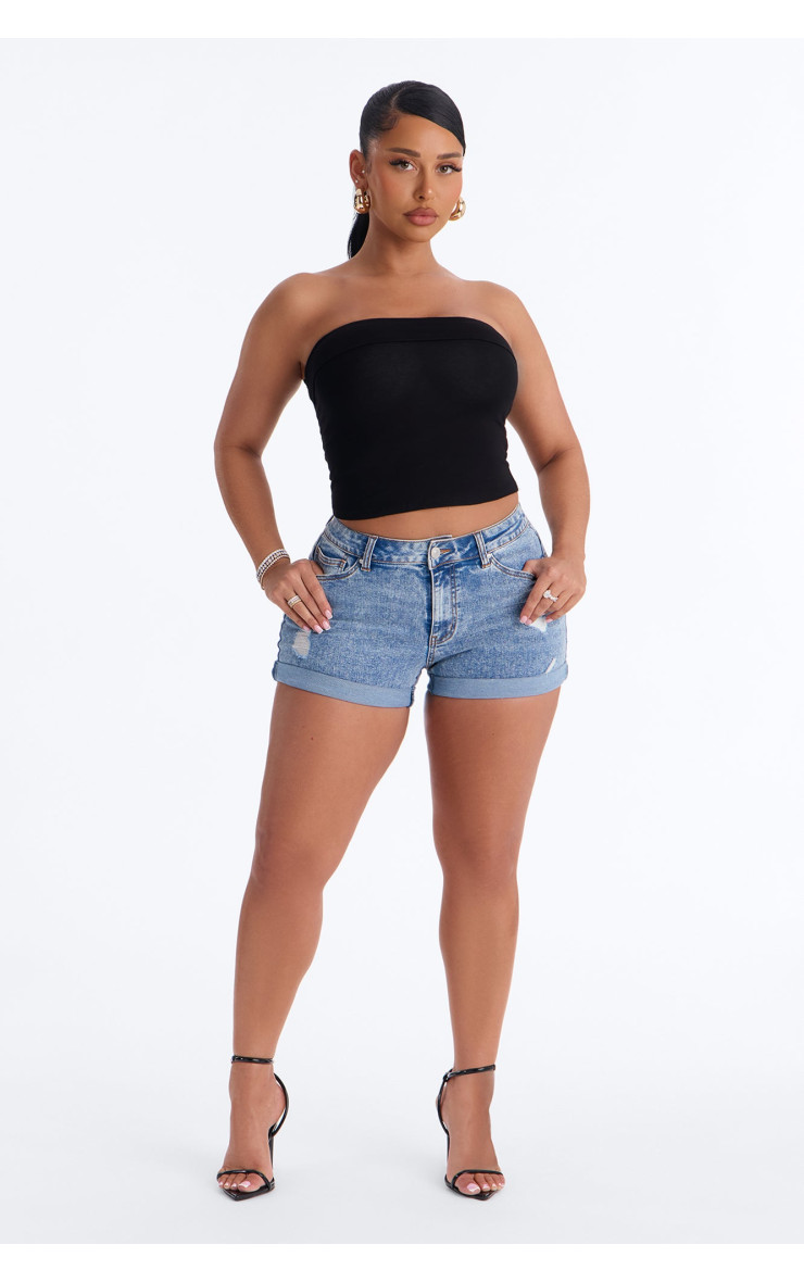 Еластичні денімні шорти "Кармела" з підкатом - Середній відтінок