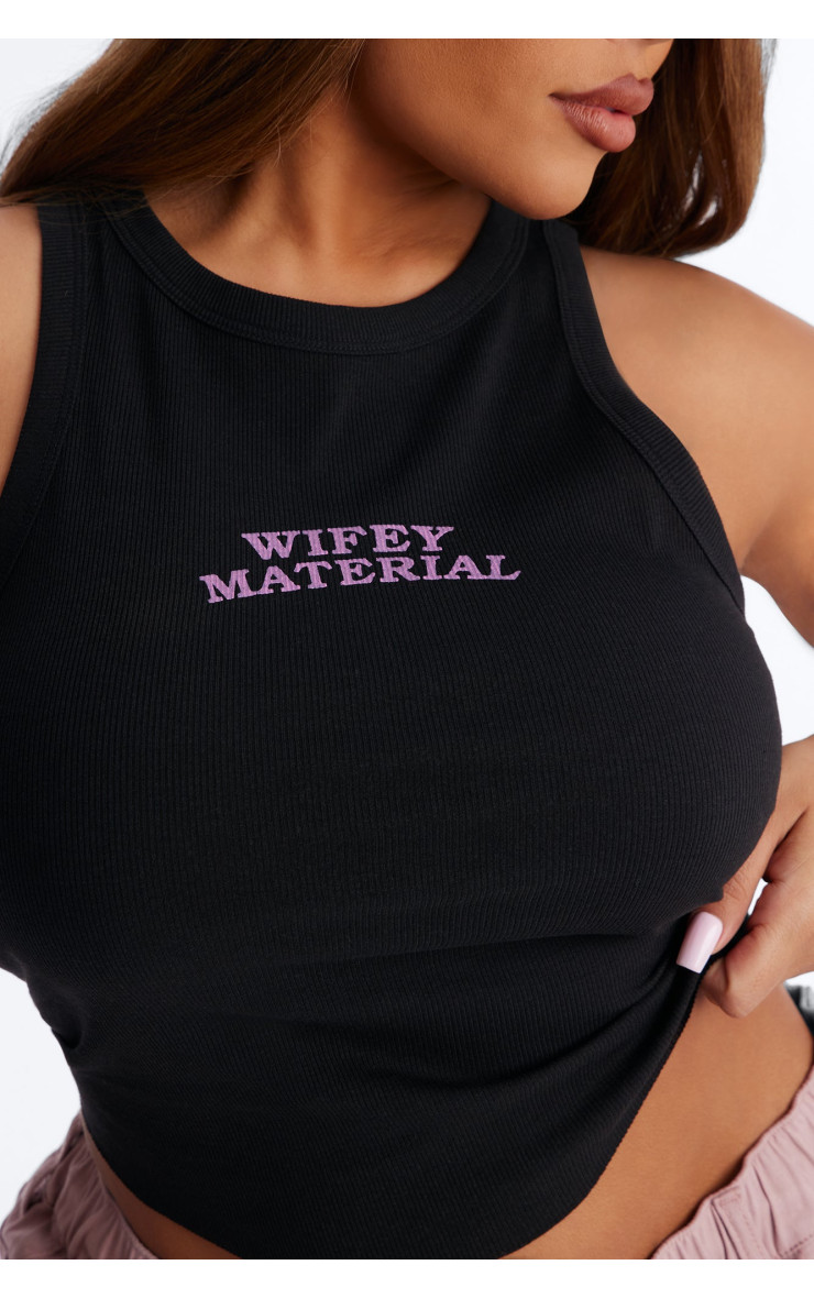 Чарівний топ "Wifey Material", що ідеально підійде для майбутньої нареченої. Ця модель додасть вашому образу романтичного настрою та невимушеної елегантності.