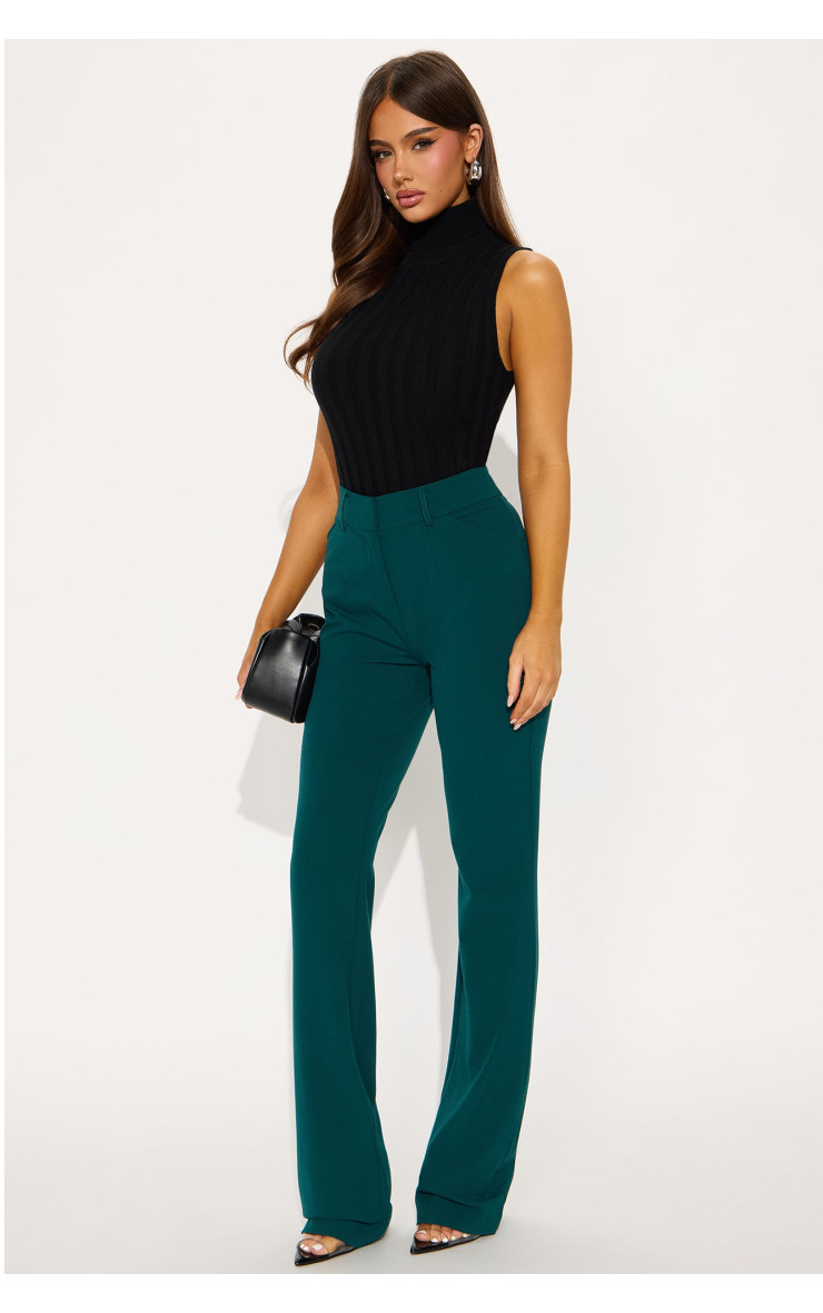 Ці вишукані штани-кльош з високою посадкою призначені для високих дівчат. Виготовлені з крепової тканини, що не тягнеться, вони гарантують бездоганну посадку. Довжина штанин 36 дюймів (91 см) ідеально доповнює силует. Модель із застібкою на гачок та потаємну блискавку виглядає елегантно та сучасно. Чудовий вибір для створення стильних образів, що підкреслять вашу індивідуальність.