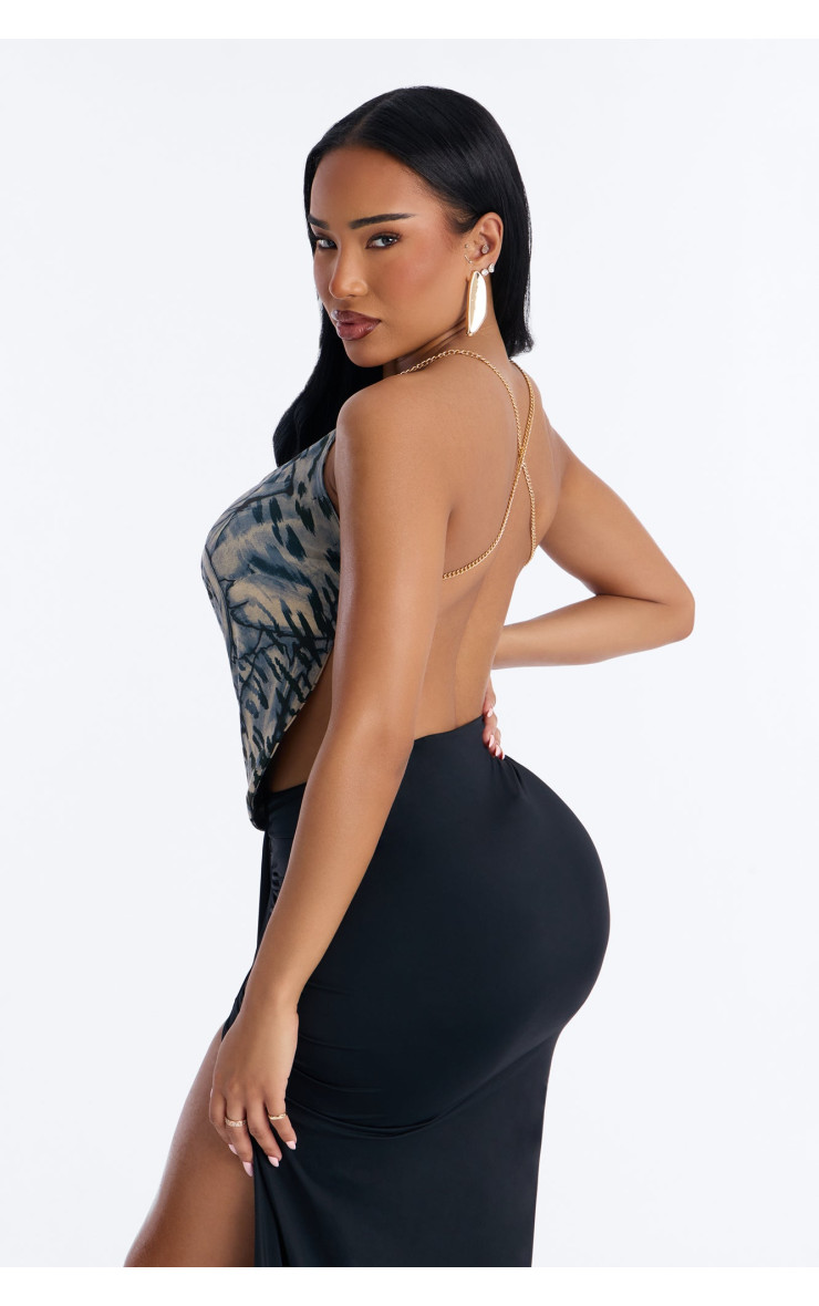 Ефектний топ "Kali" з виразним леопардовим принтом, елегантним коміром-хомутом та спокусливим вирізом-халтер. Ця модель додасть вашому образу дикої привабливості.