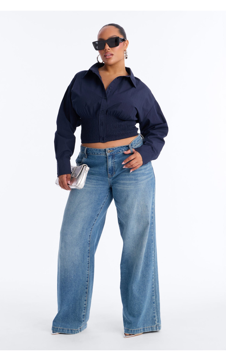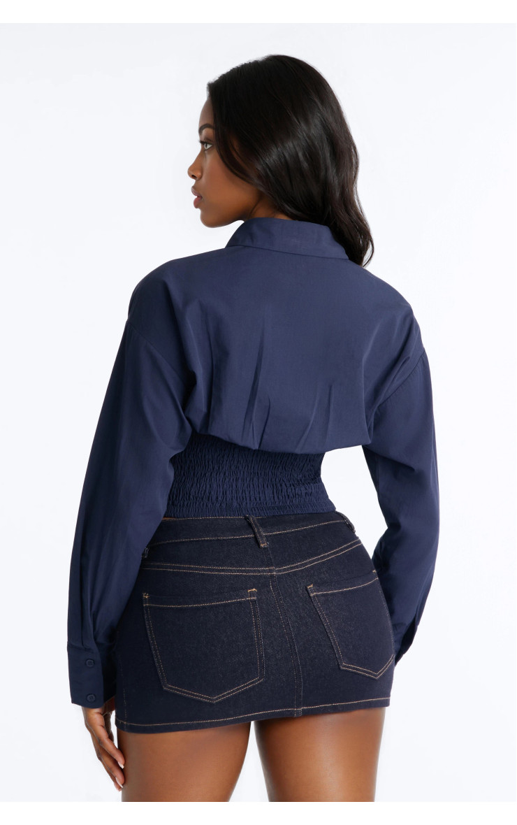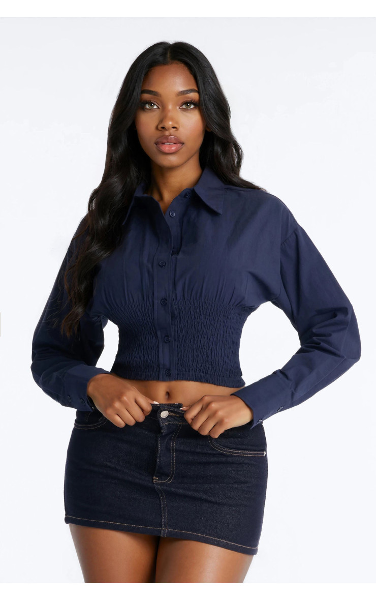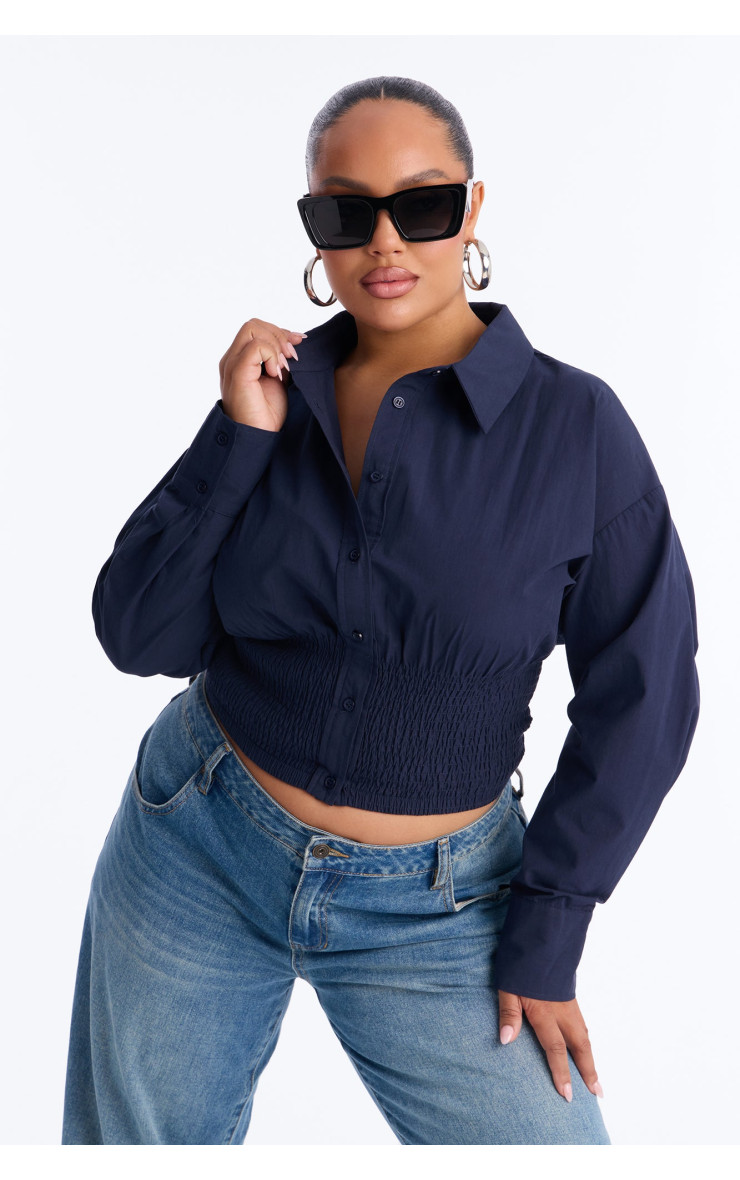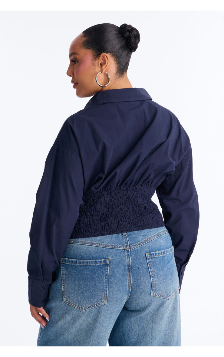 Сорочка "Better Perspective" з вишивкою та баскою - Темно-синій