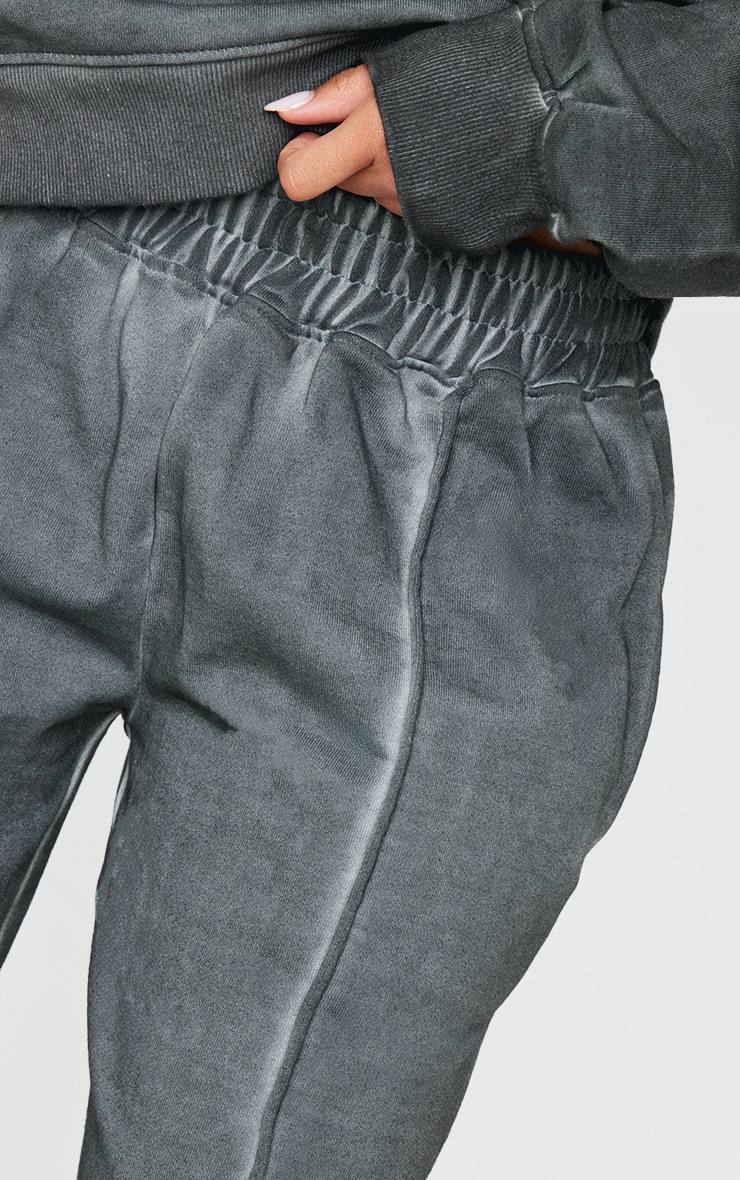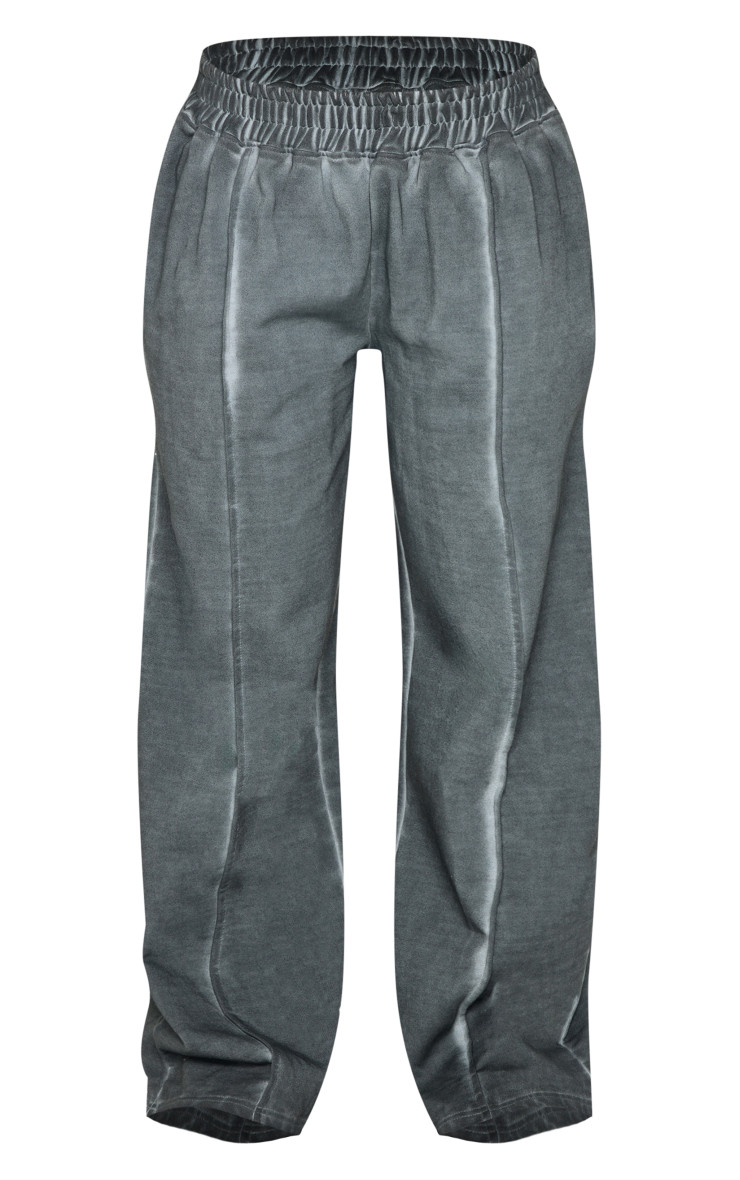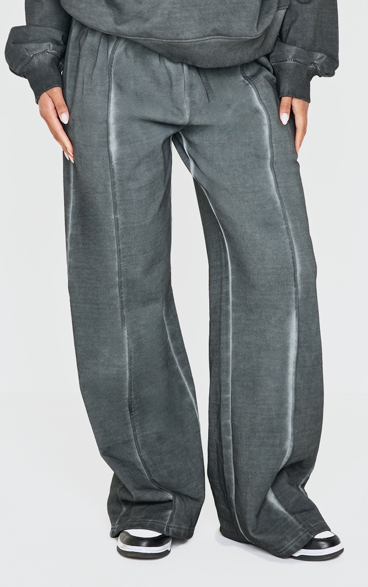 PRETTYLITTLETHING Washed Charcoal Premium Waist Wide Leg Joggers