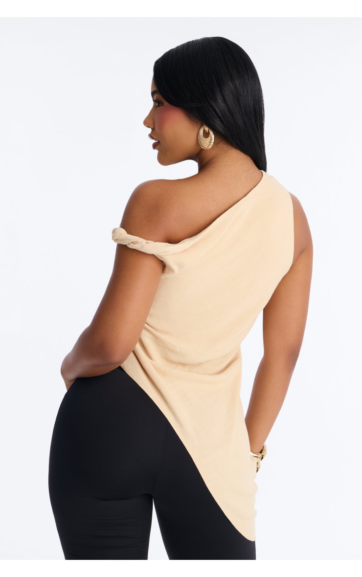Цей стильний лляний топ "Butter And Baguettes Only" з асиметричним вирізом, що відкриває одне плече, додасть вашому образу вишуканості та сучасності. Його легка тканина ідеально підійде для теплих днів, а оригінальний крій підкреслить вашу індивідуальність.