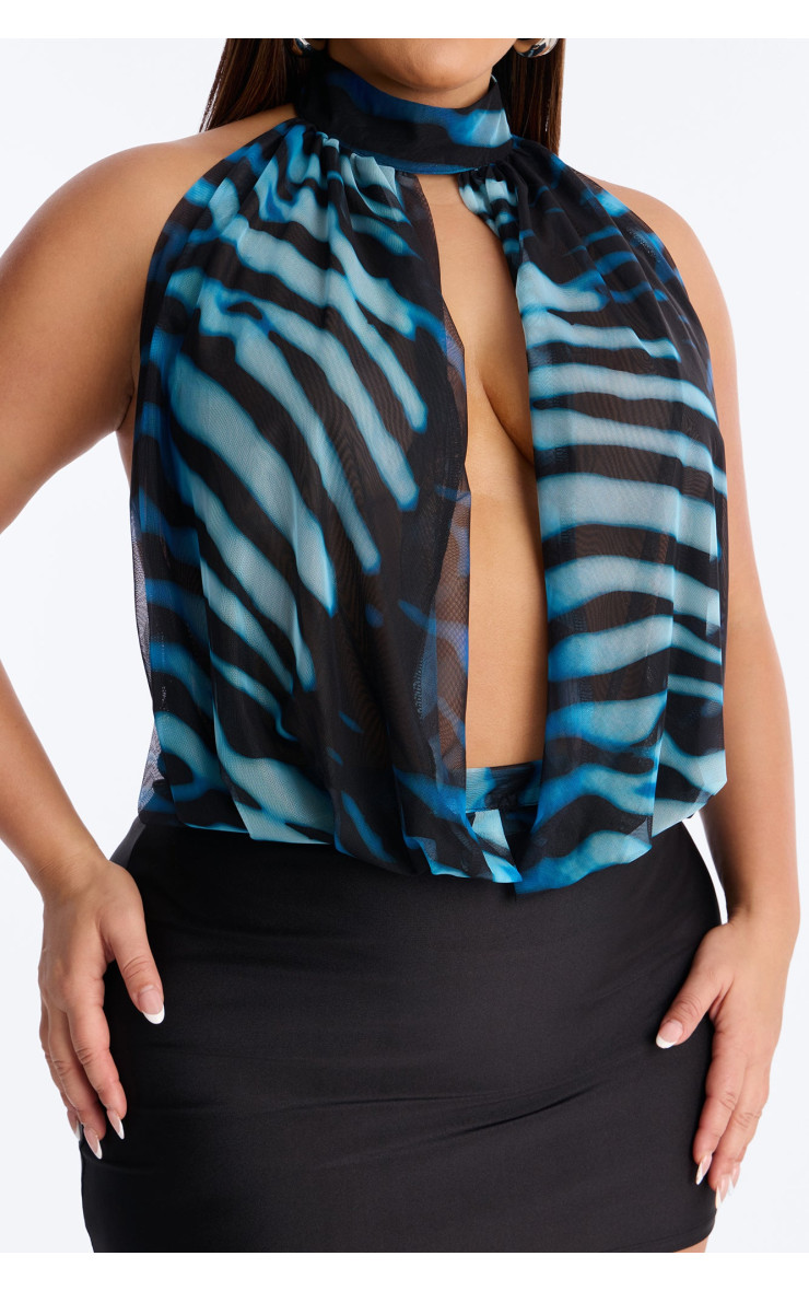 Чарівний топ "Blue Dream" з напівпрозорої сітки, прикрашений стильними вирізами. Вишуканий виріз-халтер робить цю модель неймовірно привабливою.