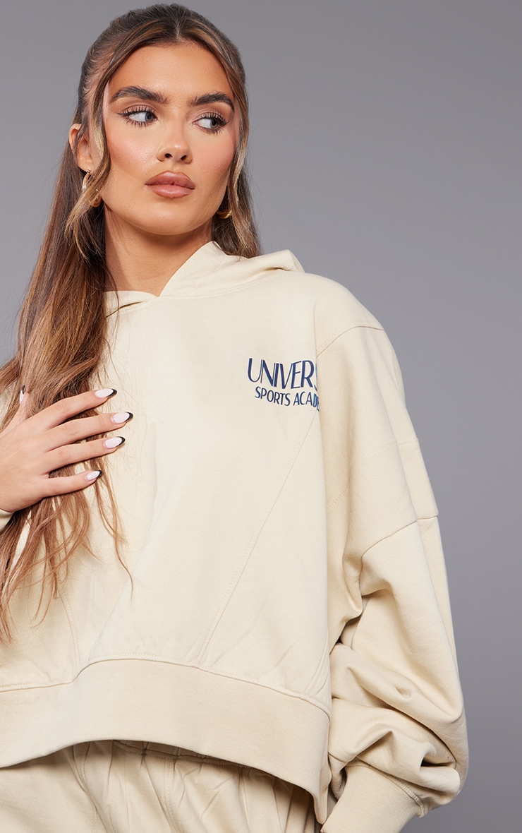 Худі преміум-класу кремового кольору з тональним принтом і панелями