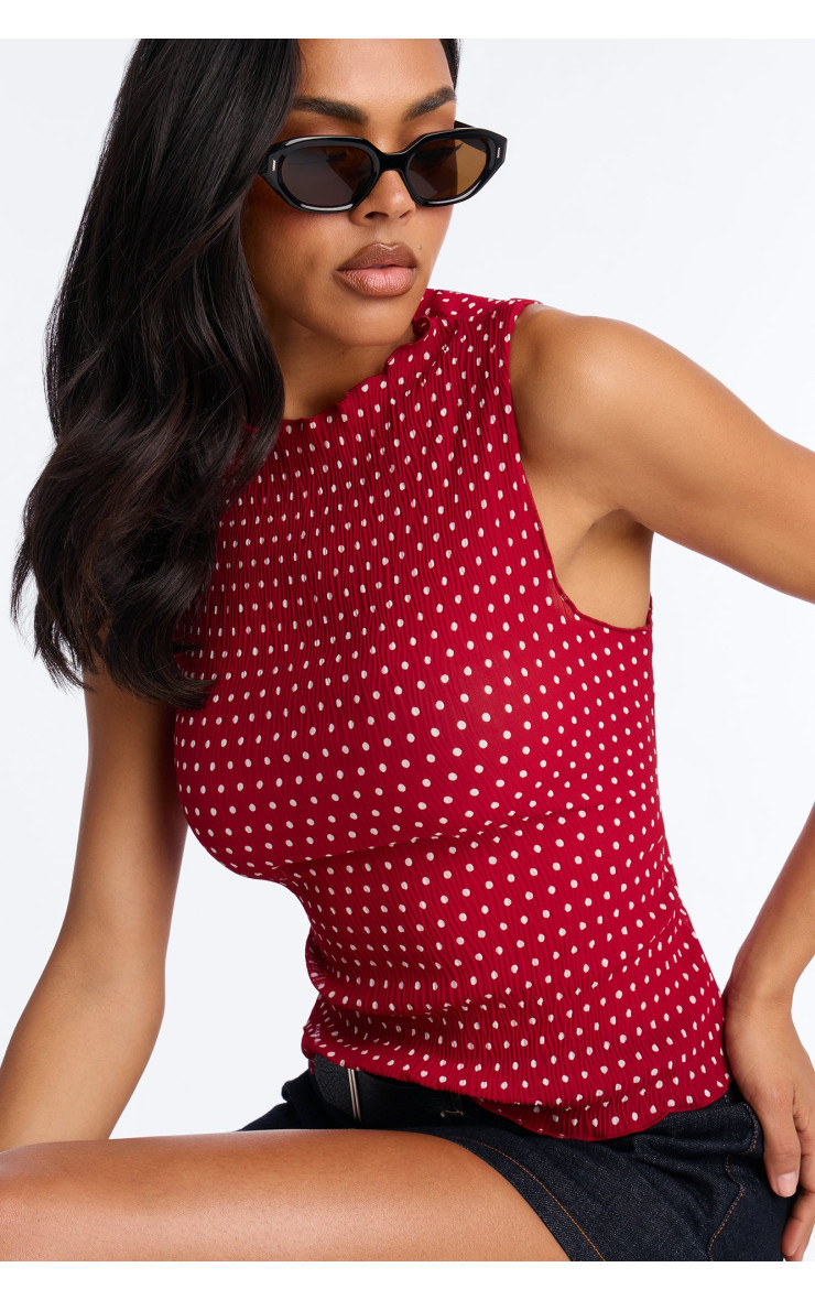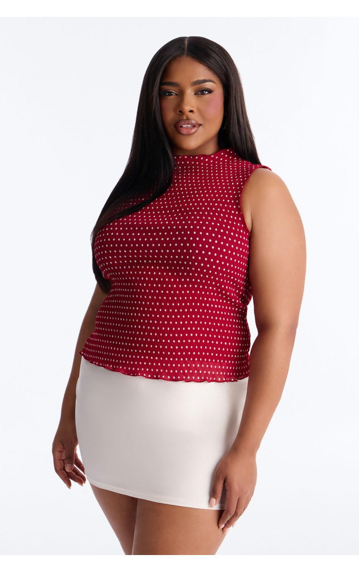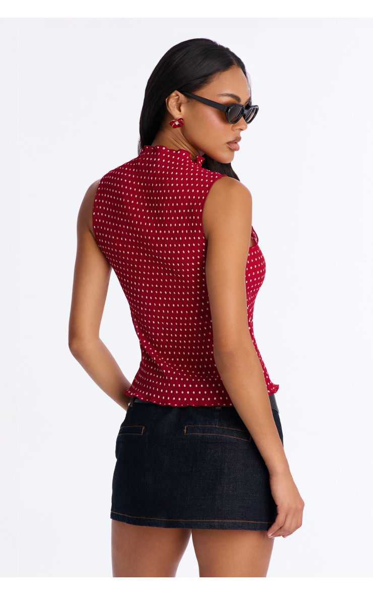Плісирований топ "Into Paradise" з коміром-стійкою та горошком - Червоний/Комбі