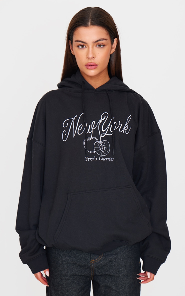 Чорна нью-йоркська вишнева толстовка з вишивкою