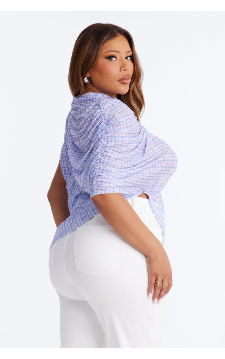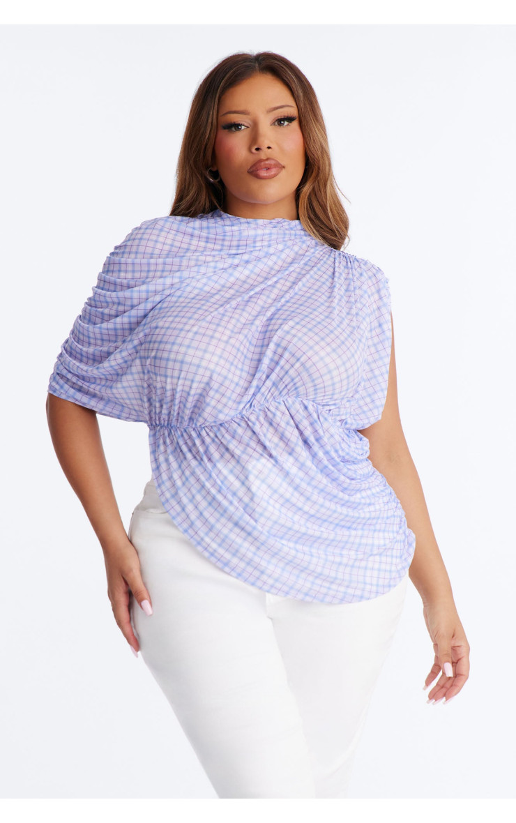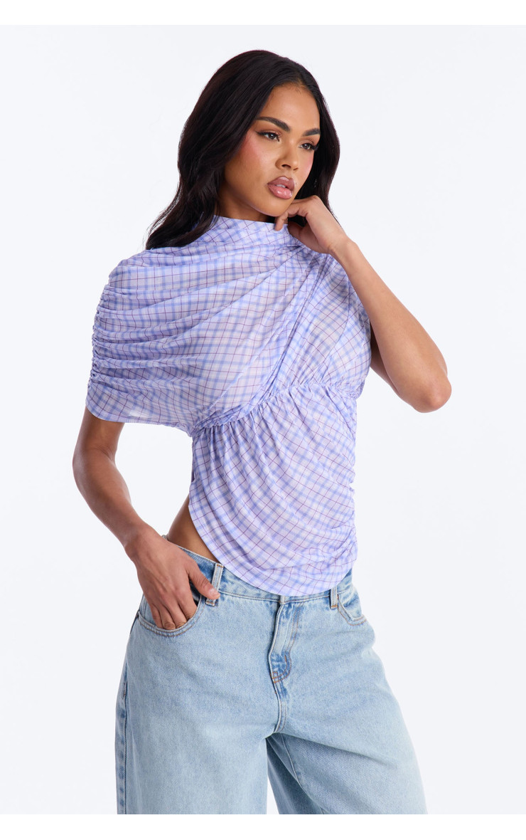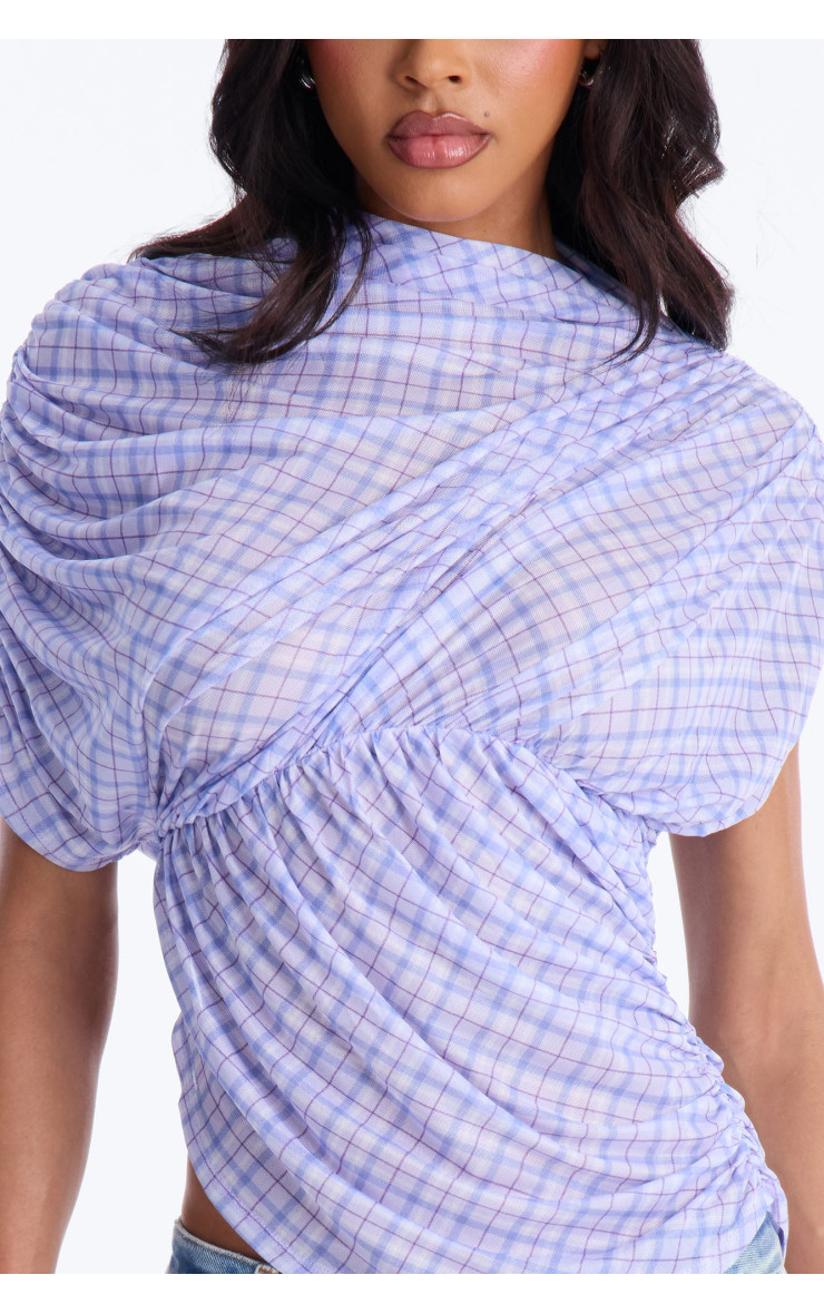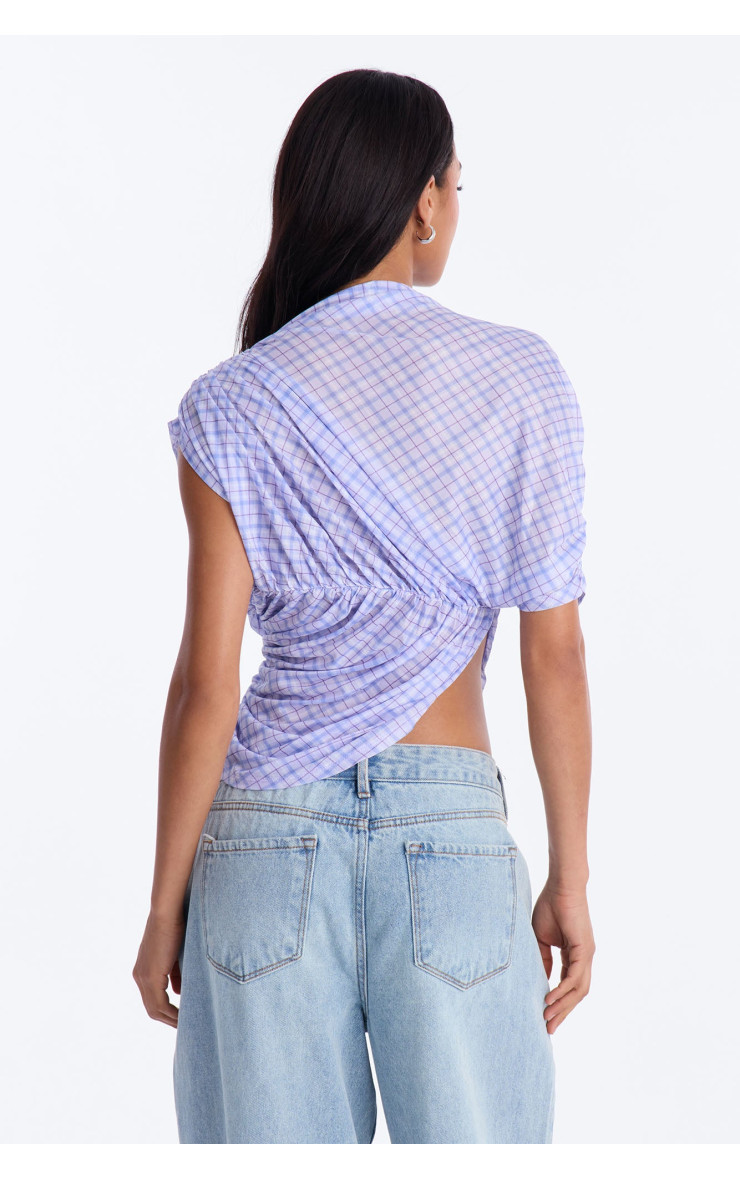 Сітчастий топ "Picnic Date" з картатим візерунком, воланами та коротким рукавом - Лавандовий/Комбі