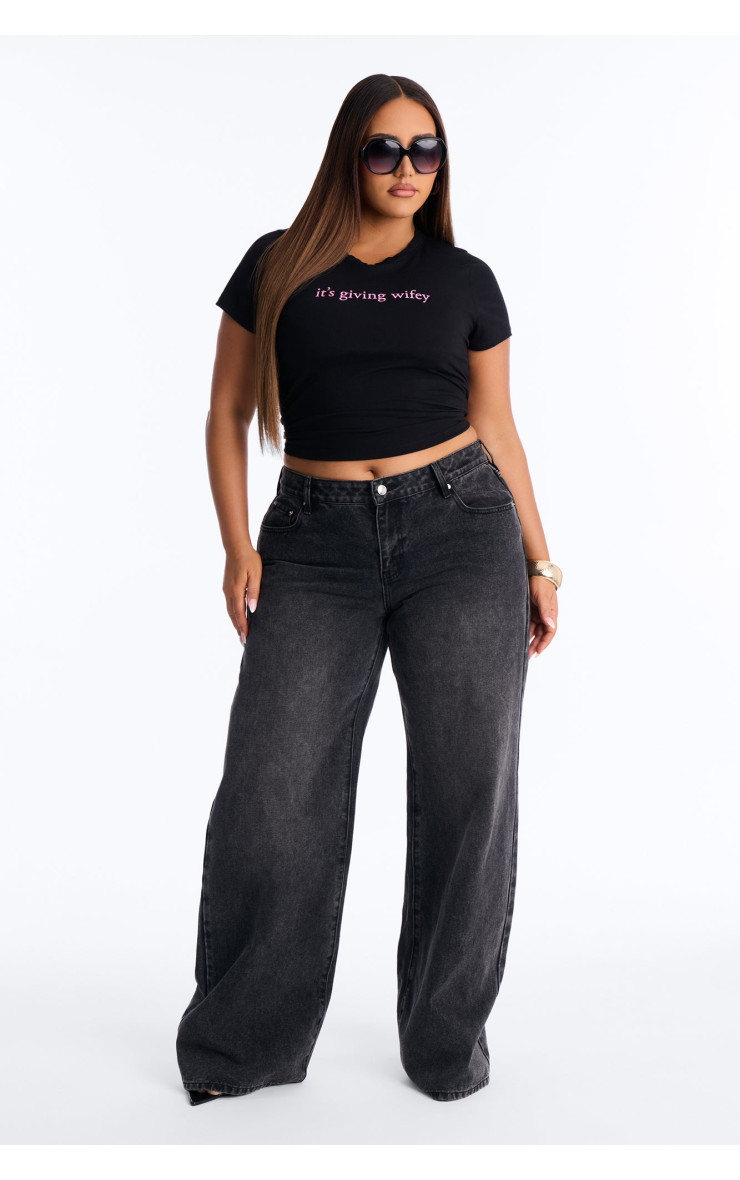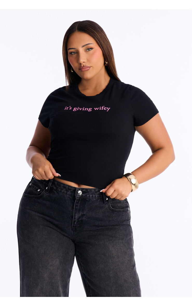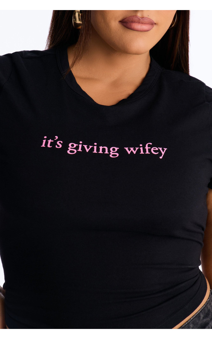 Чарівний топ з написом "It's Giving Wifey", що ідеально підійде для створення образу нареченої або для особливих свят. Ця модель додасть грайливості та романтики.