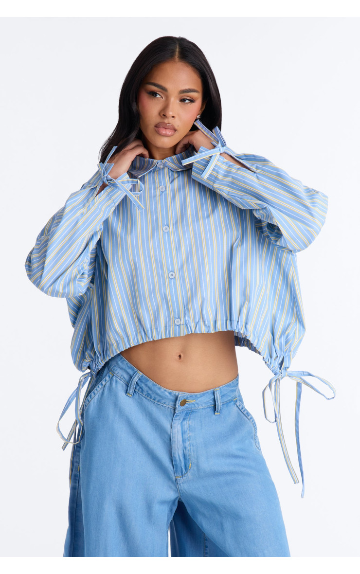 Ця смугаста сорочка "Charley" зі шнурівкою — втілення стилю та комфорту. Її унікальний дизайн та м'яка тканина роблять її ідеальною для створення невимушених, але водночас елегантних образів. Шнурівка додає цікавий акцент.