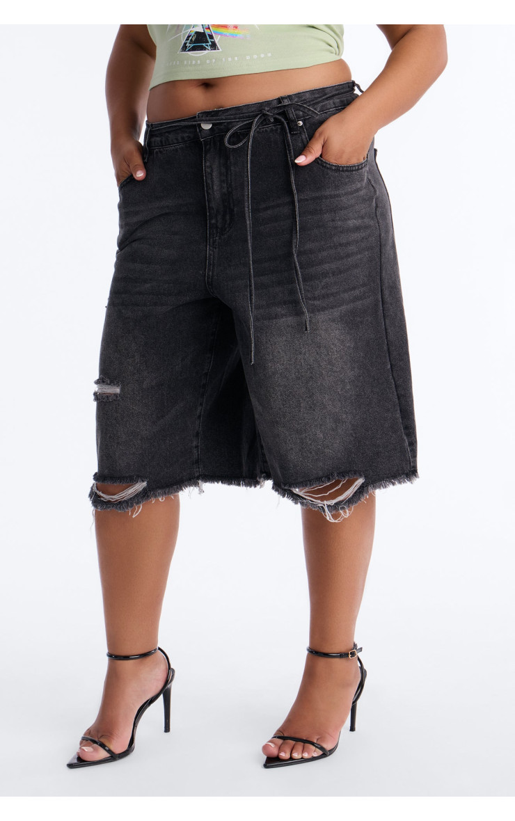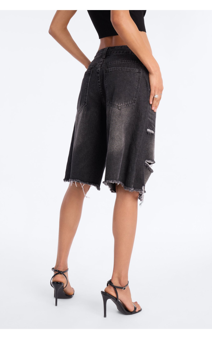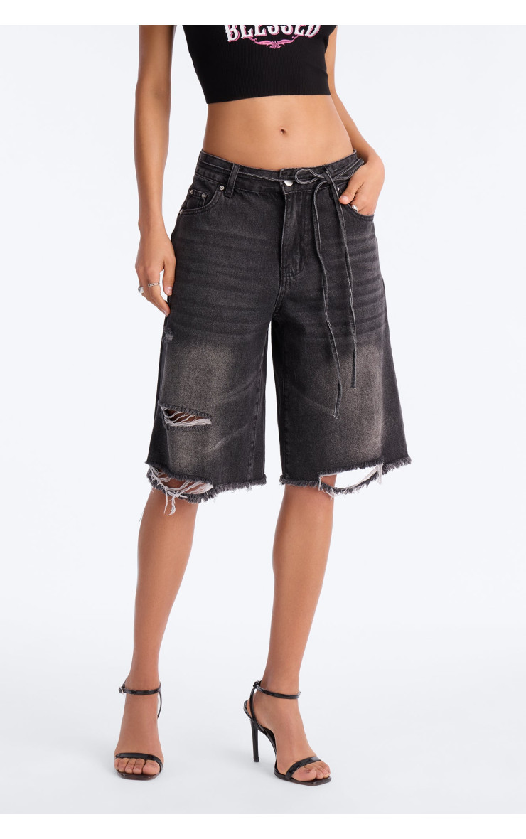 Денімні шорти "Людлоу" з зав'язками та розрізами - Чорний відтінок
