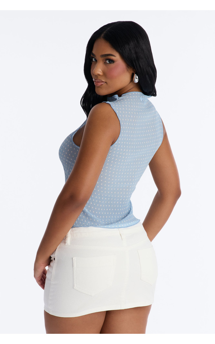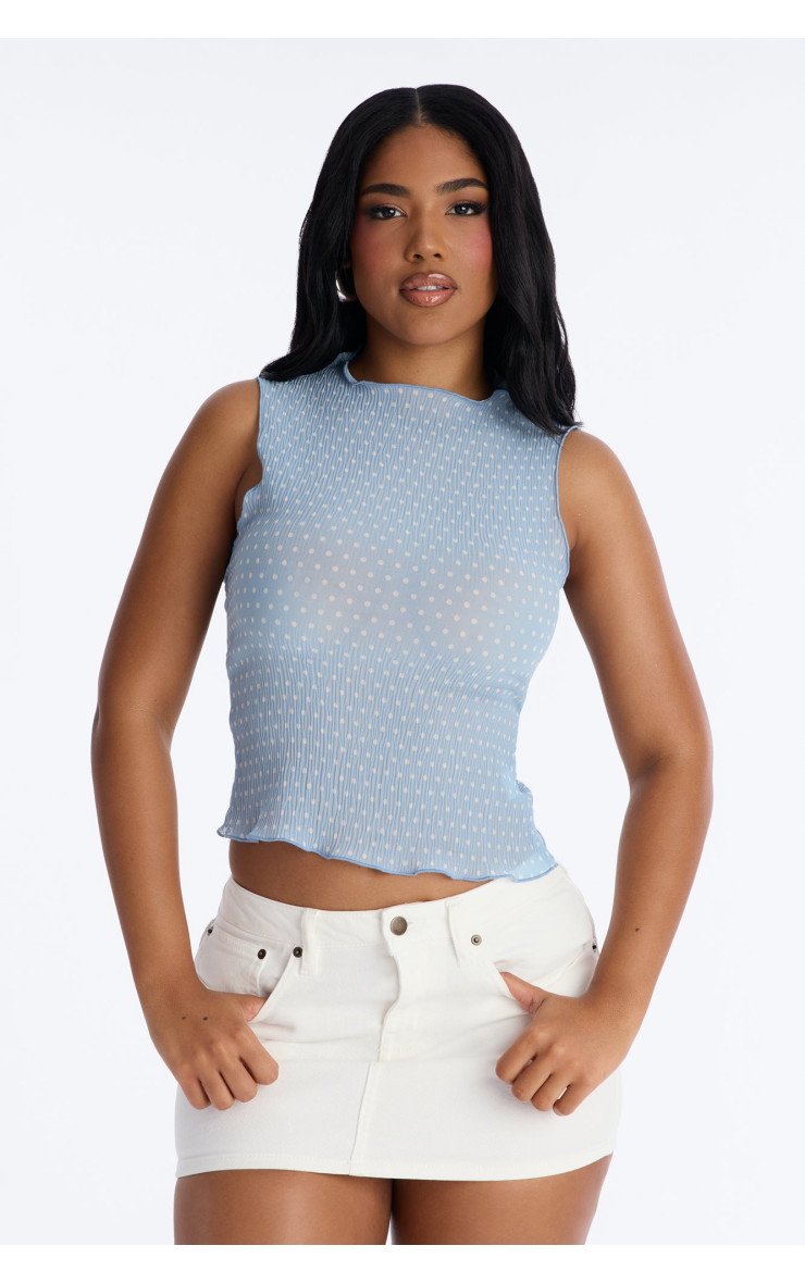 Плісирований топ "Into Paradise" з коміром-стійкою та горошком - Світло-блакитний