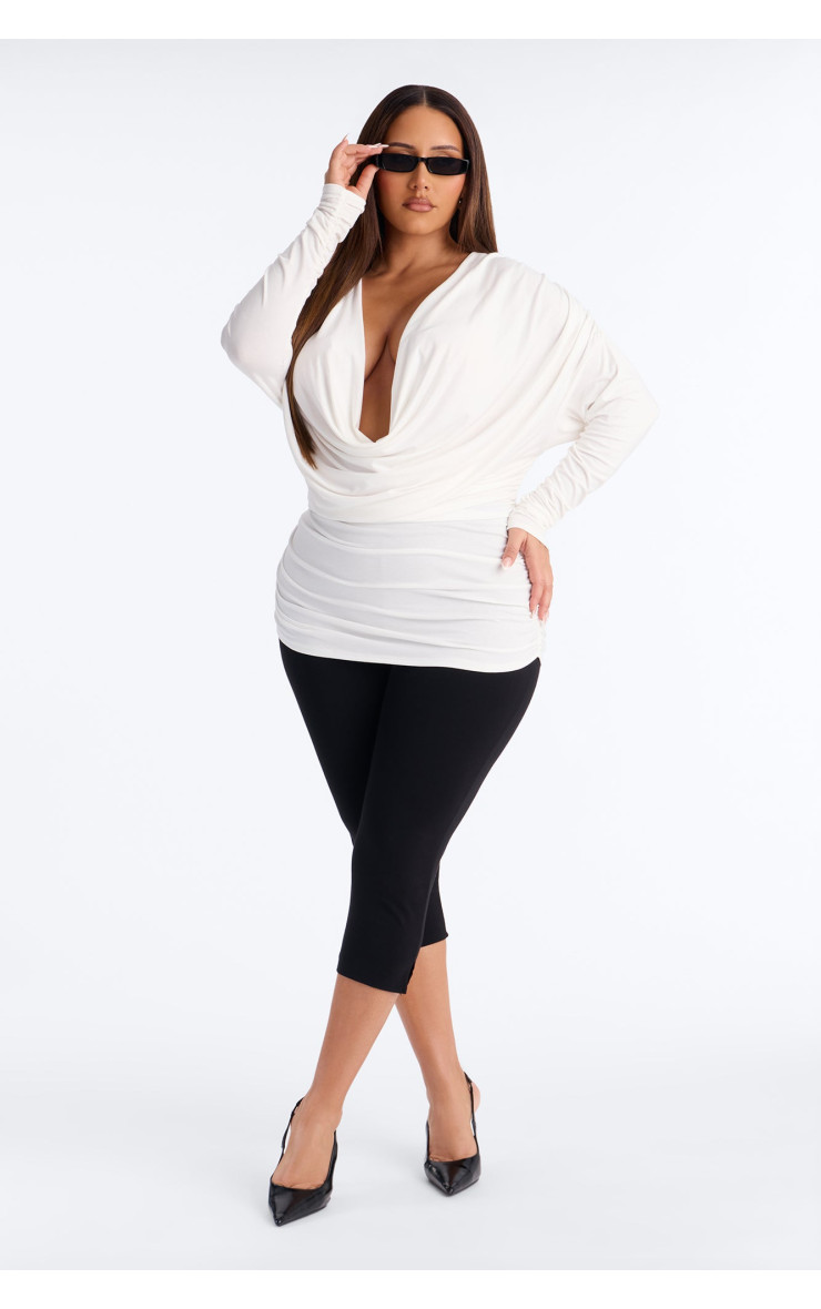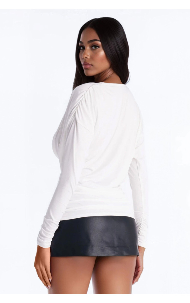 Топ "Janette" з глибоким коміром-стійкою та драпіруванням - Білий