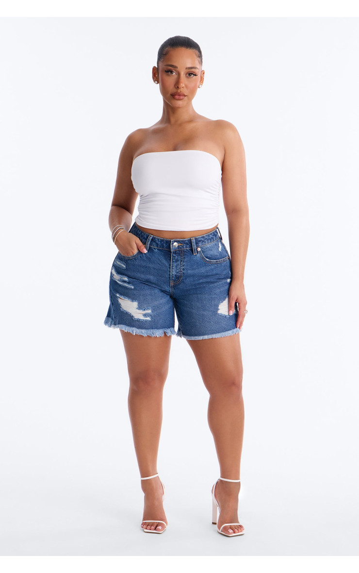Створіть неперевершений образ з цими рваними денімними шортами "Без сигналу". Ефектні розрізи та потертості надають їм рокерського шарму, а універсальний середній відтінок деніму робить їх чудовим доповненням до будь-якого вбрання.