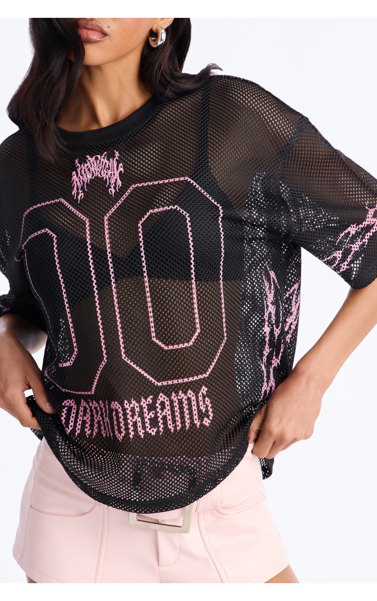 Цей сітчастий джемпер "Dark Dreamer" — це втілення загадковості та стилю. Його унікальний дизайн та прозора тканина створюють ефектний образ. Виготовлений з легких матеріалів, він забезпечує комфорт та свободу рухів. Додайте нотку драматизму до свого гардеробу!