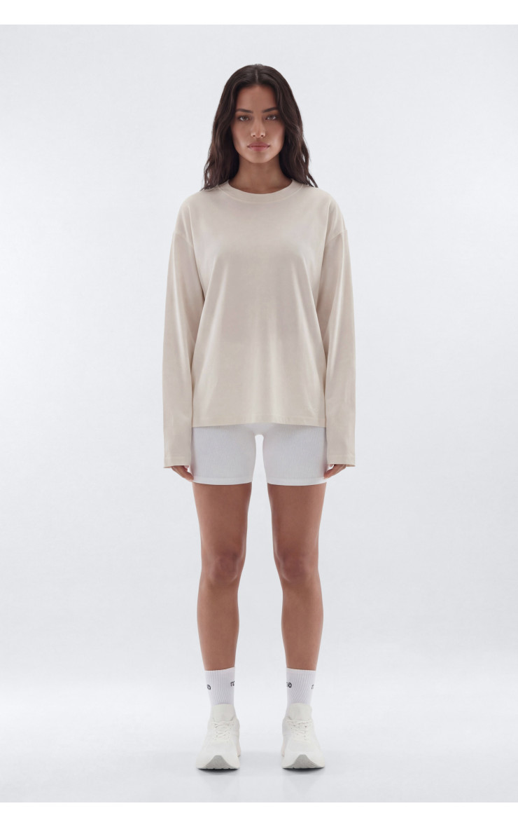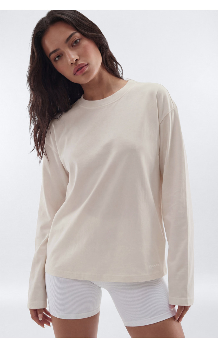 Комфортний оверсайз топ з бавовняного джерсі та довгим рукавом. Ця модель забезпечує затишок та стиль, ідеально підходячи для повсякденного носіння.