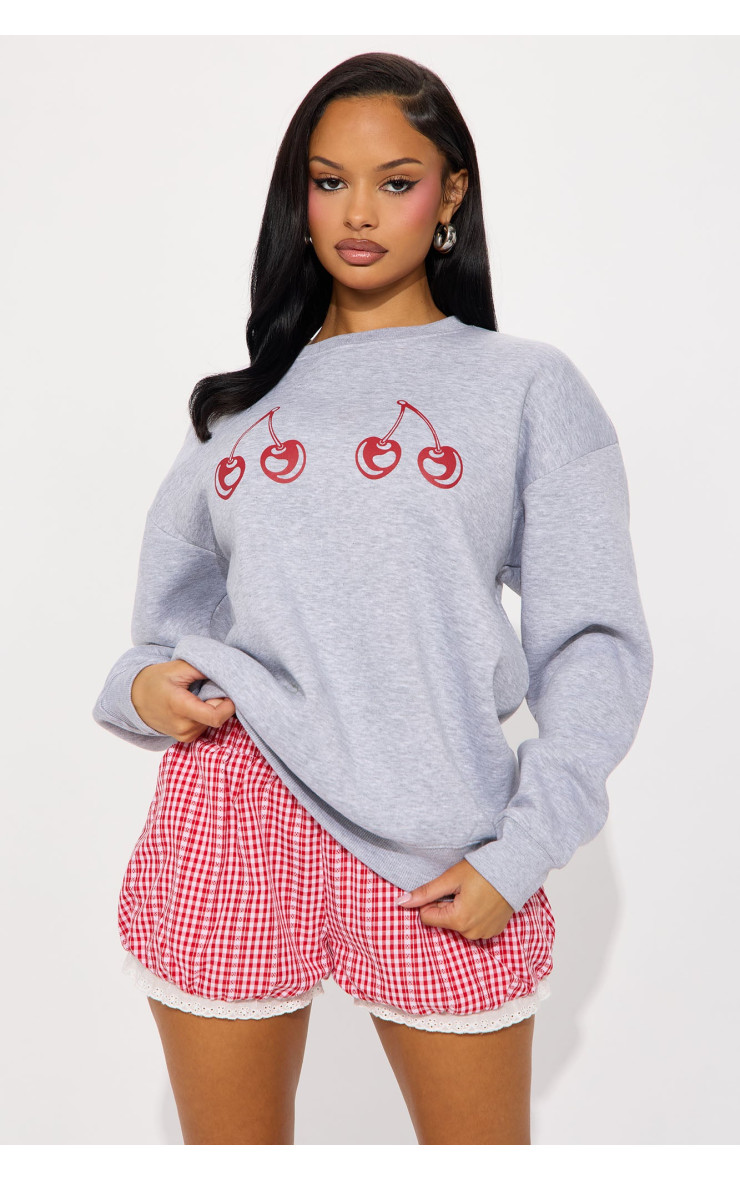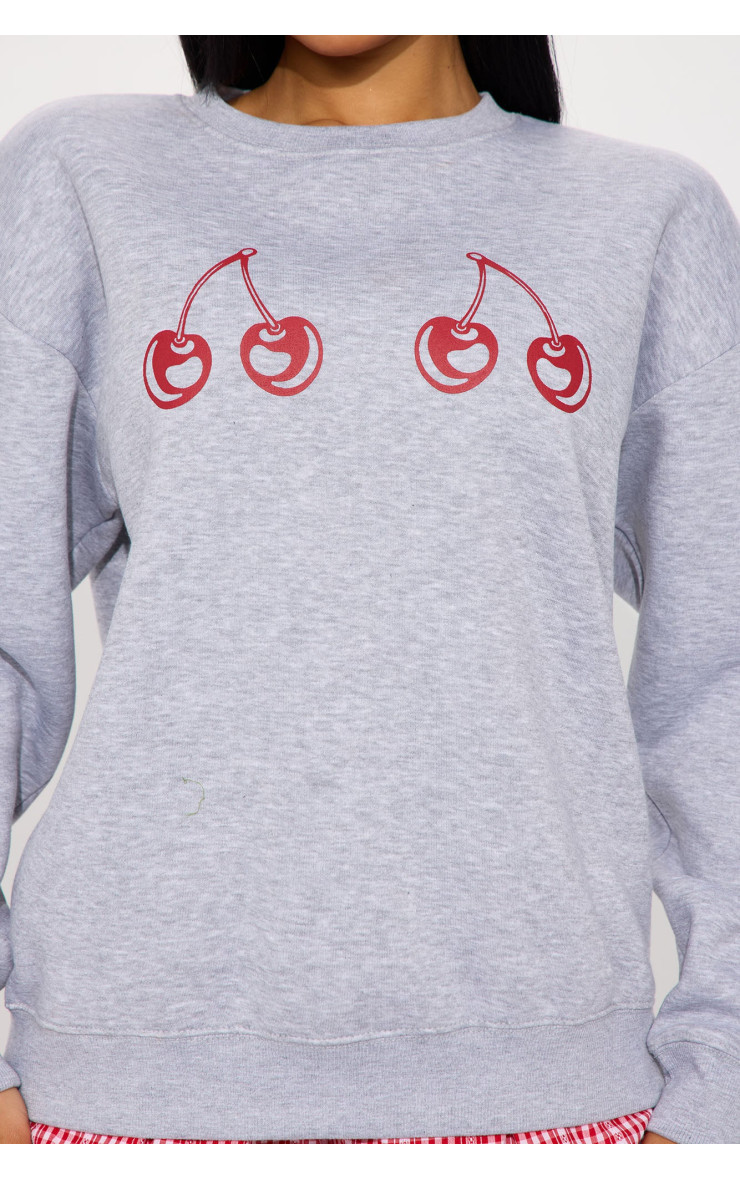 Додайте нотку стилю та яскравості до свого гардеробу з цим чудовим світшотом "Cherry Bomb". Виготовлений з високоякісної тканини, він забезпечить вам комфорт та чудовий зовнішній вигляд. Оригінальний дизайн з вишневою тематикою робить його унікальним елементом вашого стилю. Цей світшот – ідеальний вибір для створення модних образів.