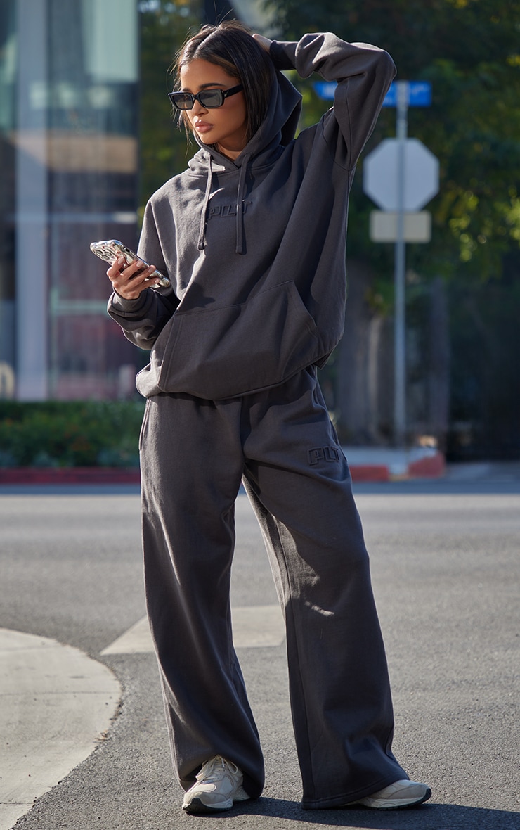 PRETTYLITTLETHING Широкі штани для бігу Charcoal Premium з тисненням