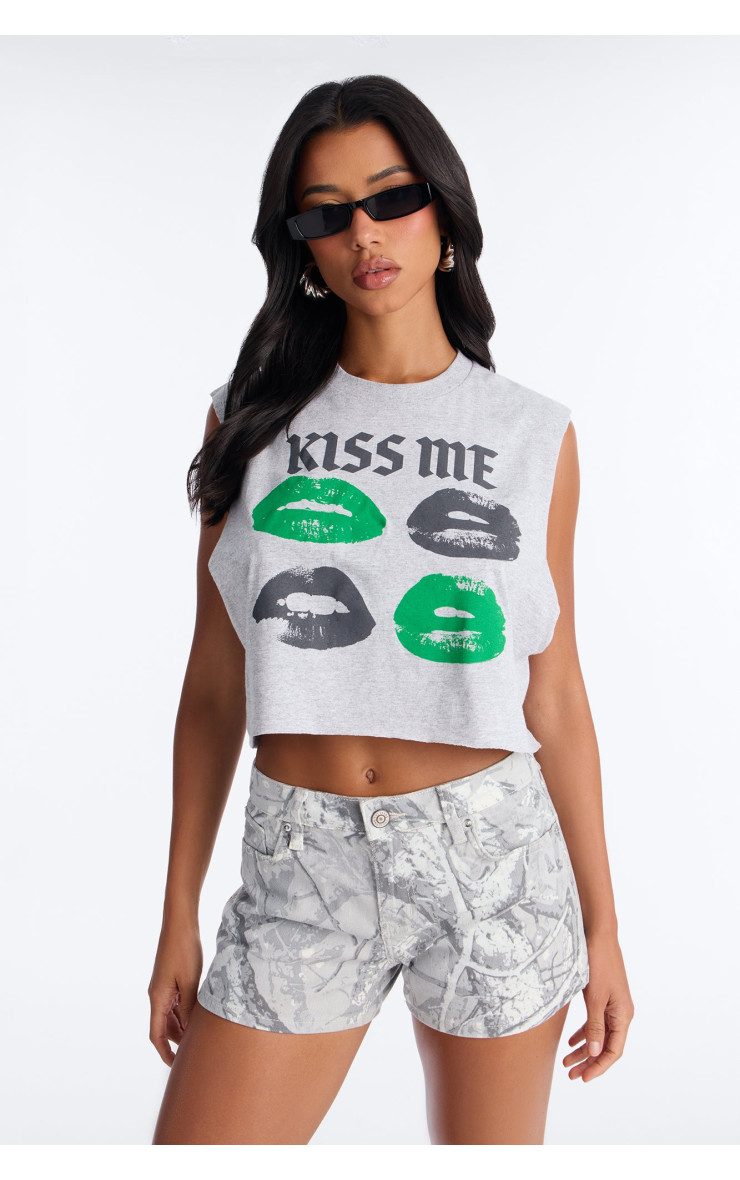 Виразіть свою ніжність з цією укороченою футболкою "Kiss Me". Її чарівний дизайн з жабо та м'яка тканина роблять її ідеальним вибором для створення романтичних образів. Виготовлена з приємної на дотик бавовни, вона забезпечує комфорт. Додайте нотку солодкості до свого стилю!
