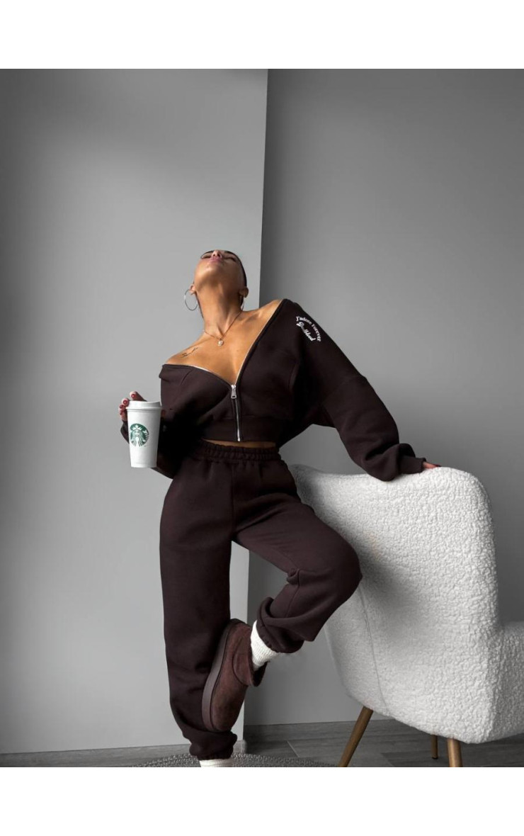 Костюм в самих трендових кольорах з укороченою кофтою на замочку , манжети рибана . Вироблений з любовʼю до кожного