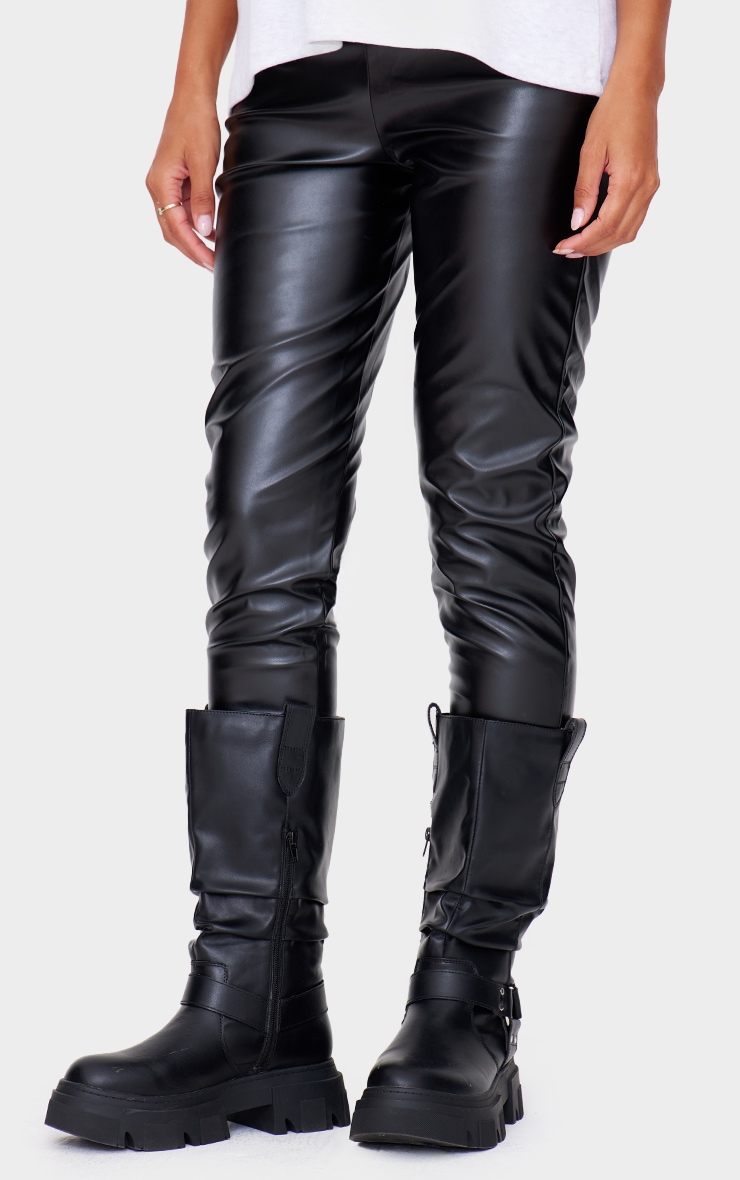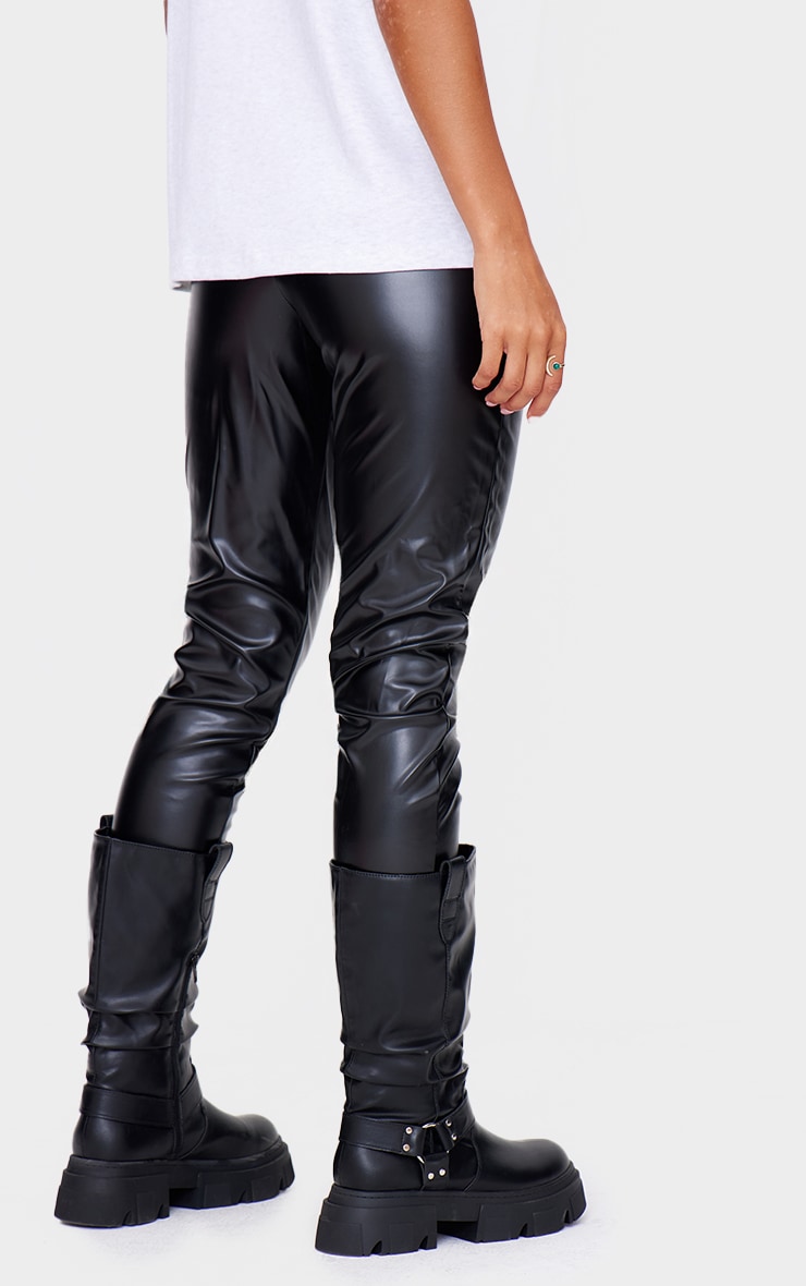 Чорні легінси з високою талією зі штучної шкіри