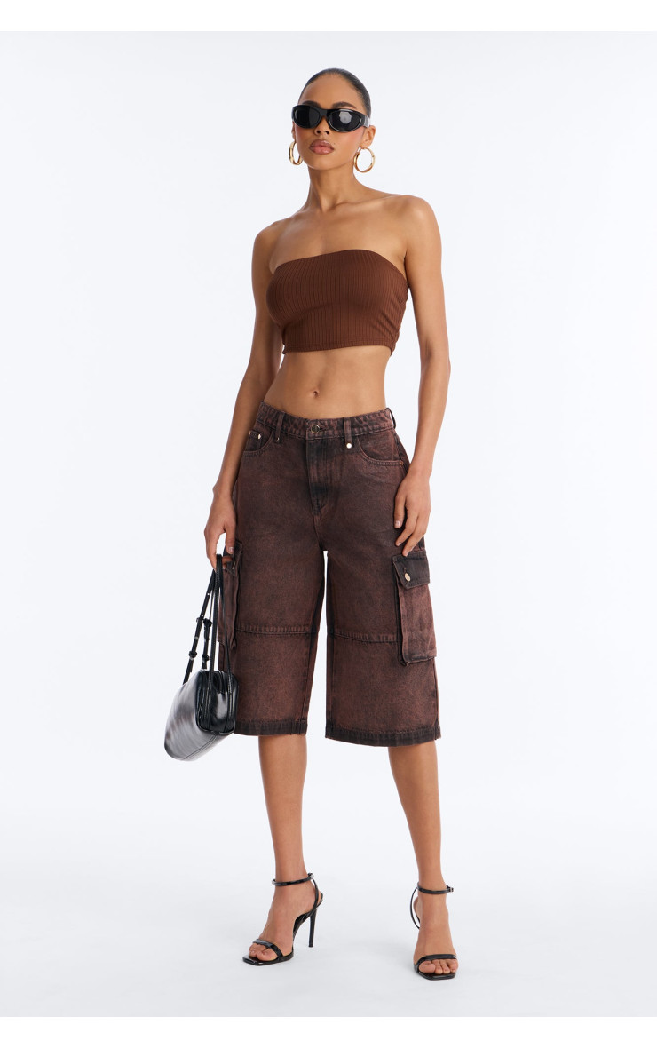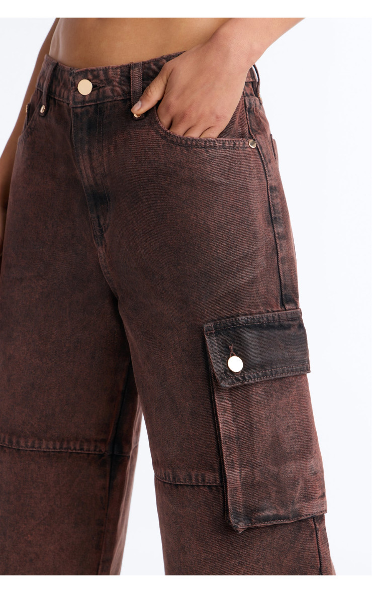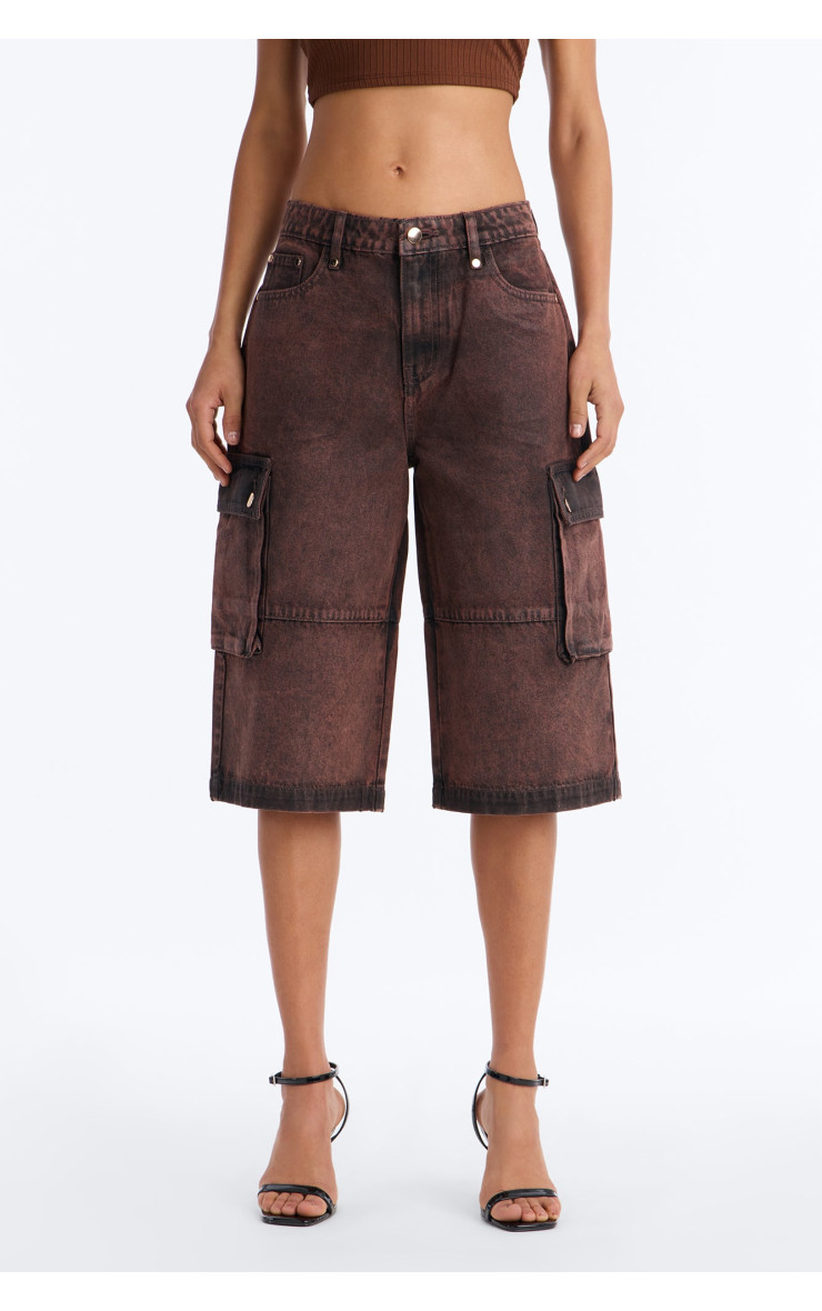 Шорти "Група сім" Карго з покриттям денім - Коричневий