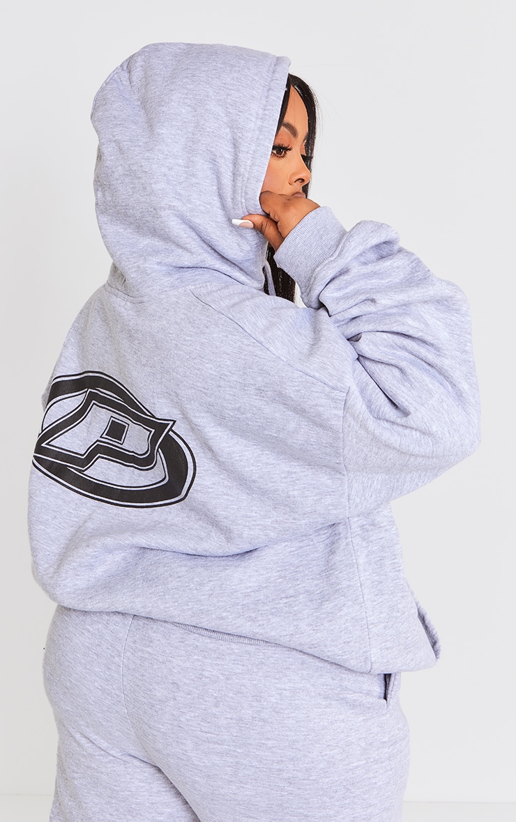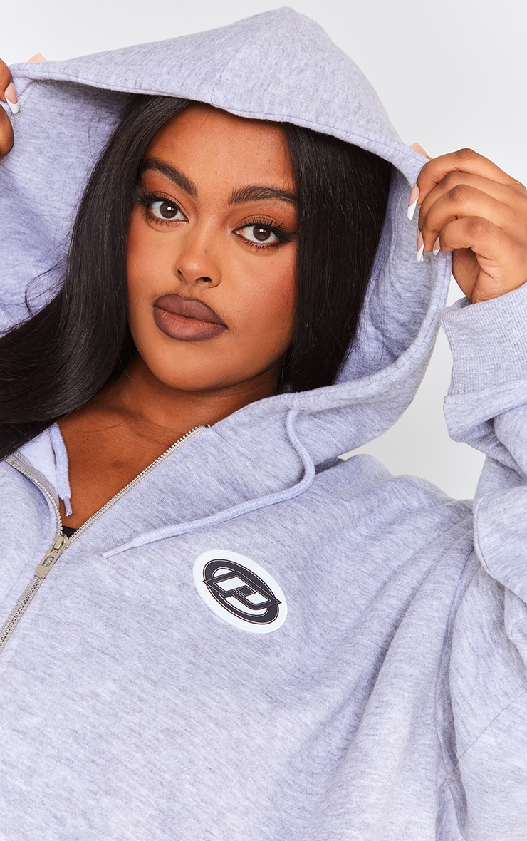 PrettyLittlething Plus Grey Marl Logo значок негабаритна блискавка через балахон