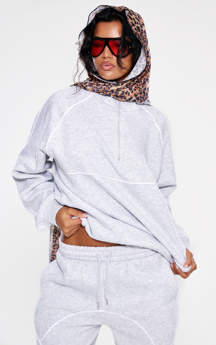 Попелясто-сірий світшот великого розміру з контрастною окантовкою на блискавці