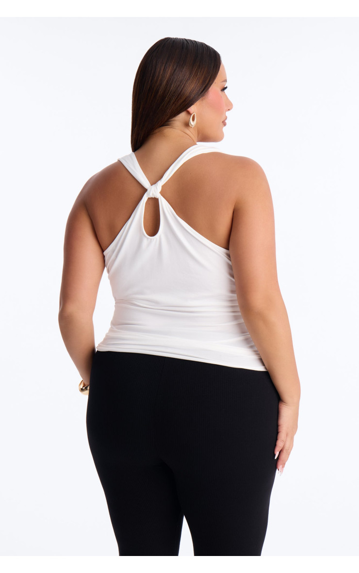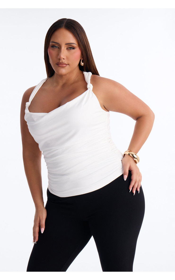 Топ "Pretty Persuasion" з вузлом, коміром-стійкою та драпіруванням - Білий