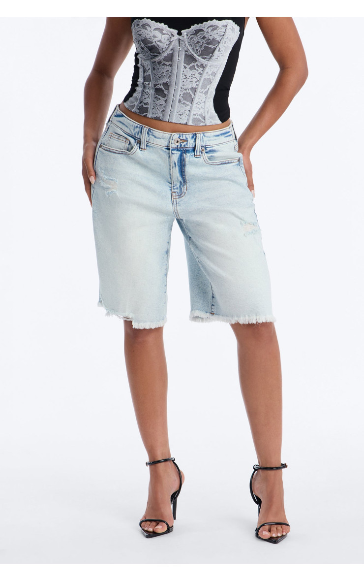 Еластичні денімні шорти "Перша зупинка" в стилі 90-х - Світлий відтінок
