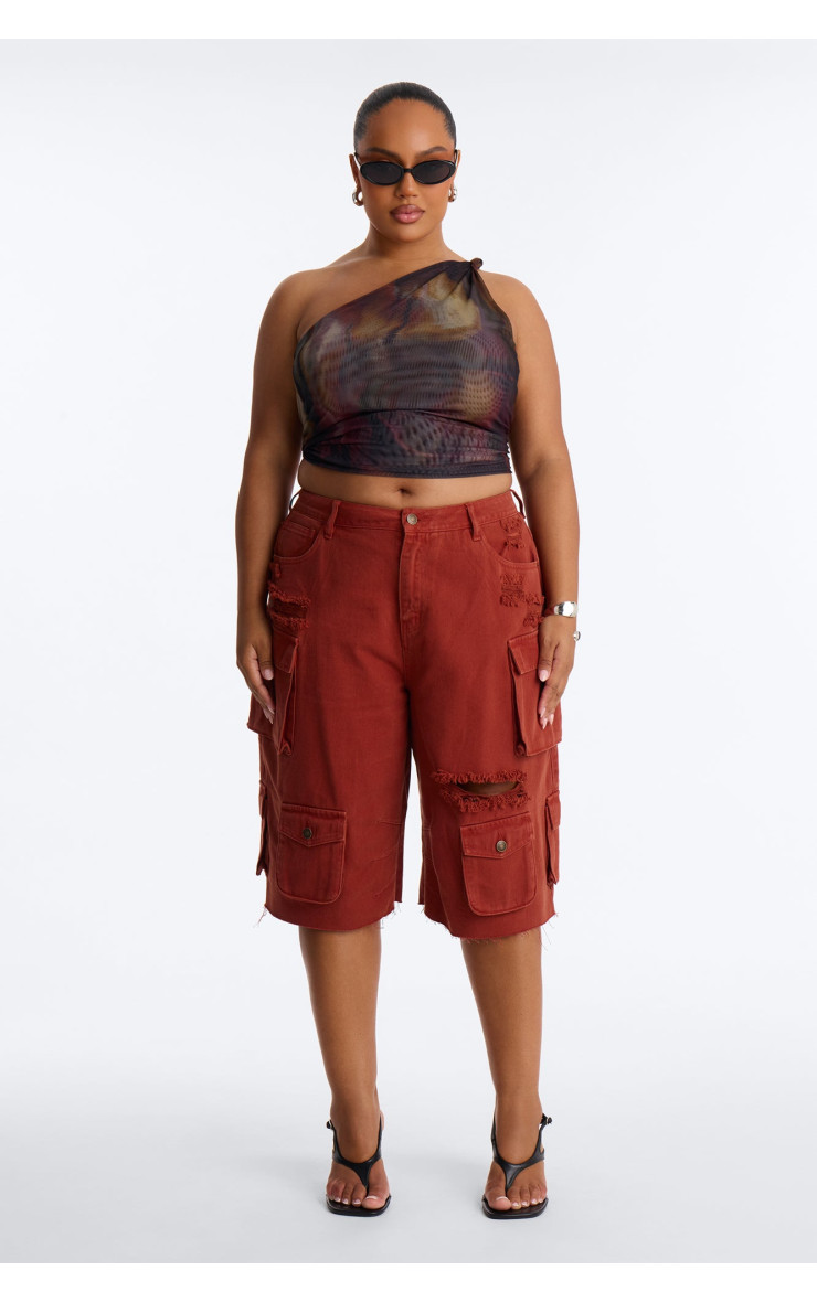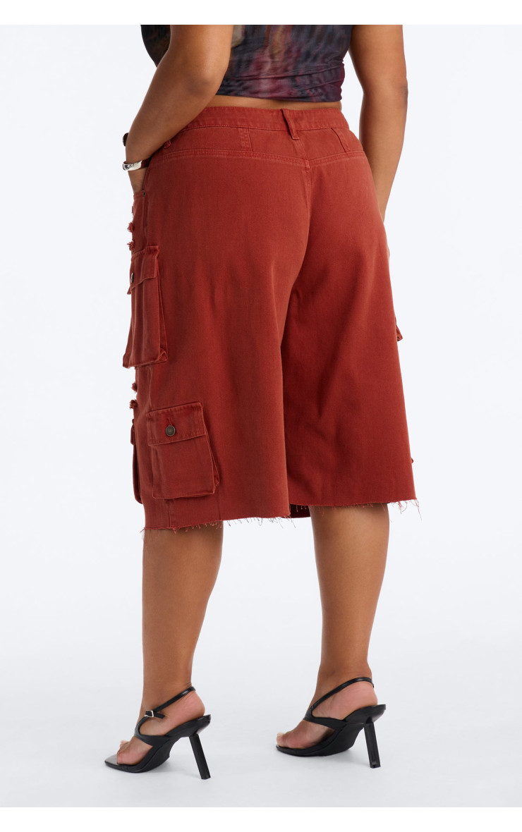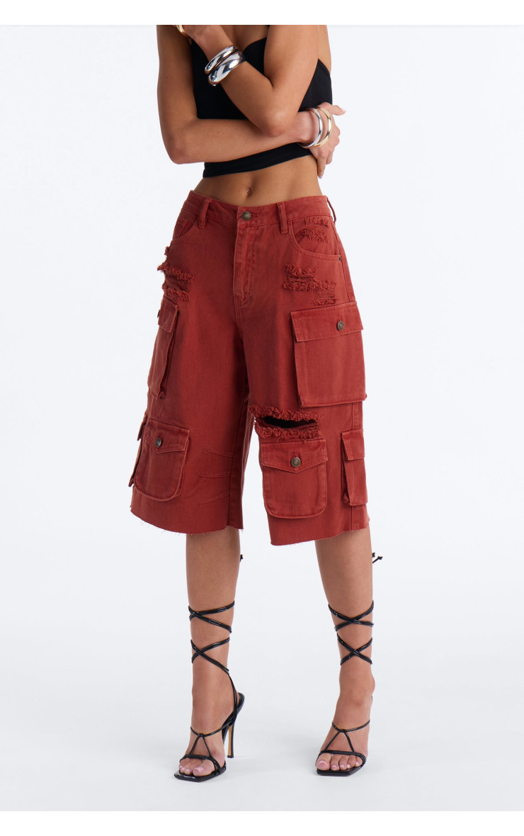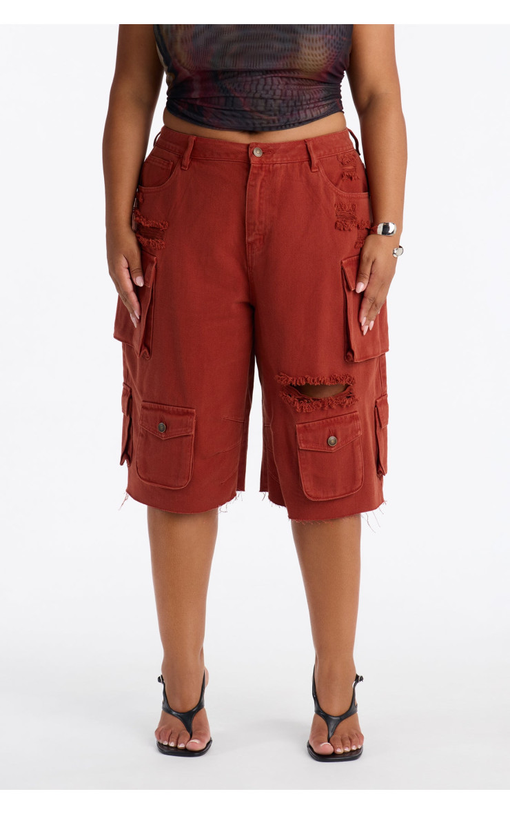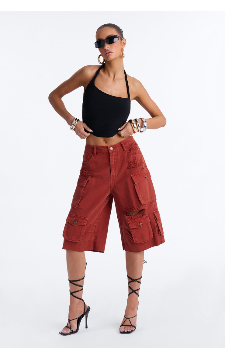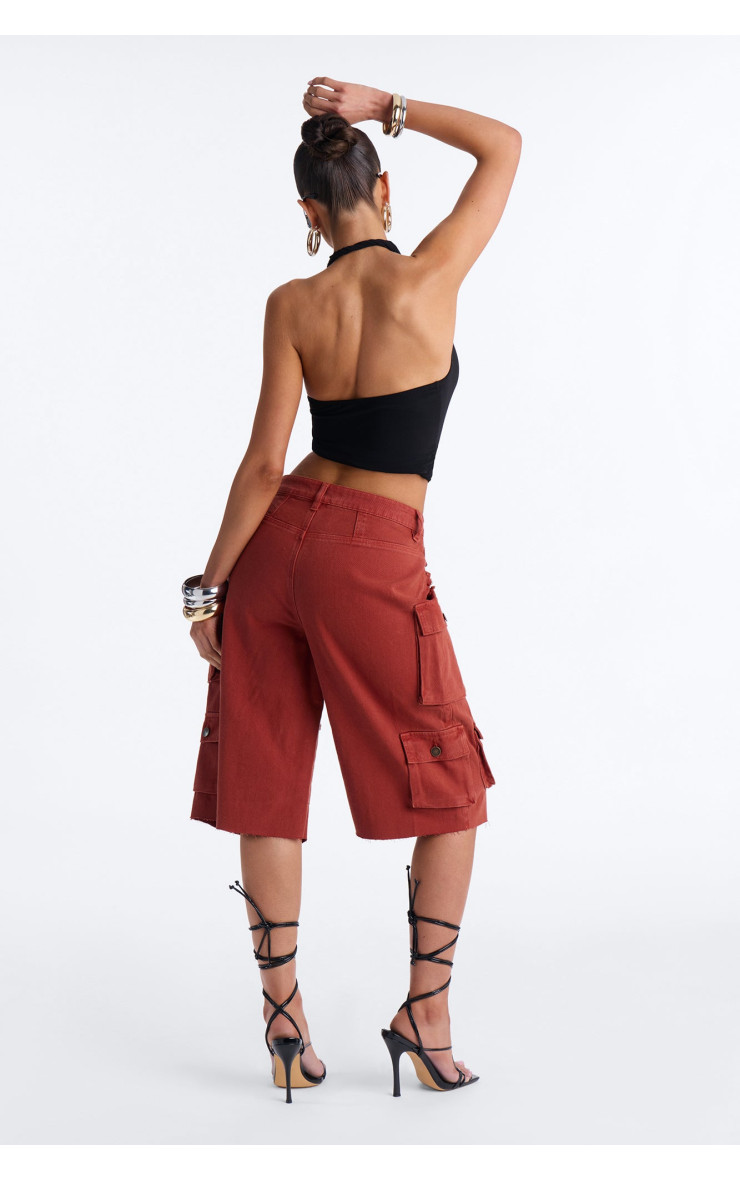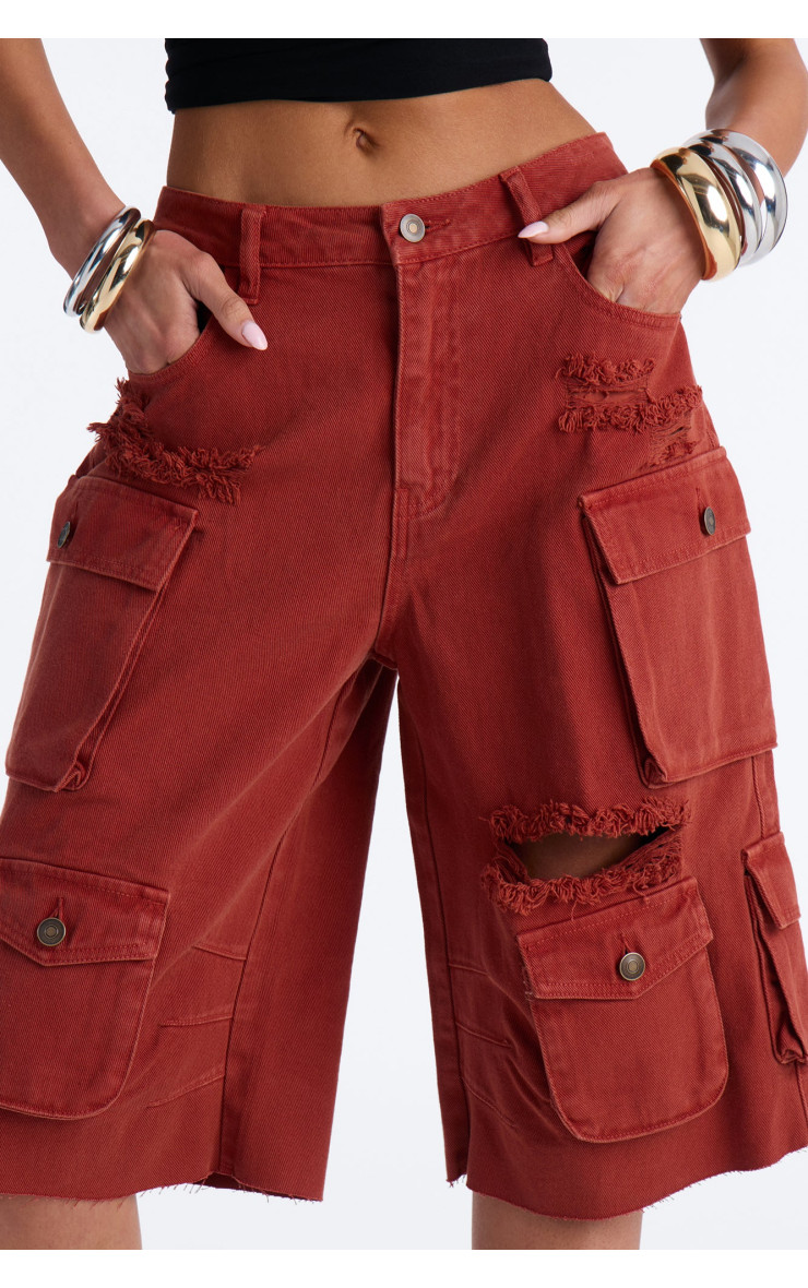 Будьте готові до будь-яких пригод з цими зручними карго-бермудами. Практичні кишені та вільний крій забезпечують максимальний комфорт, а стильний іржавий відтінок додає образу особливого шарму. Ідеальний вибір для активного відпочинку та міських прогулянок.