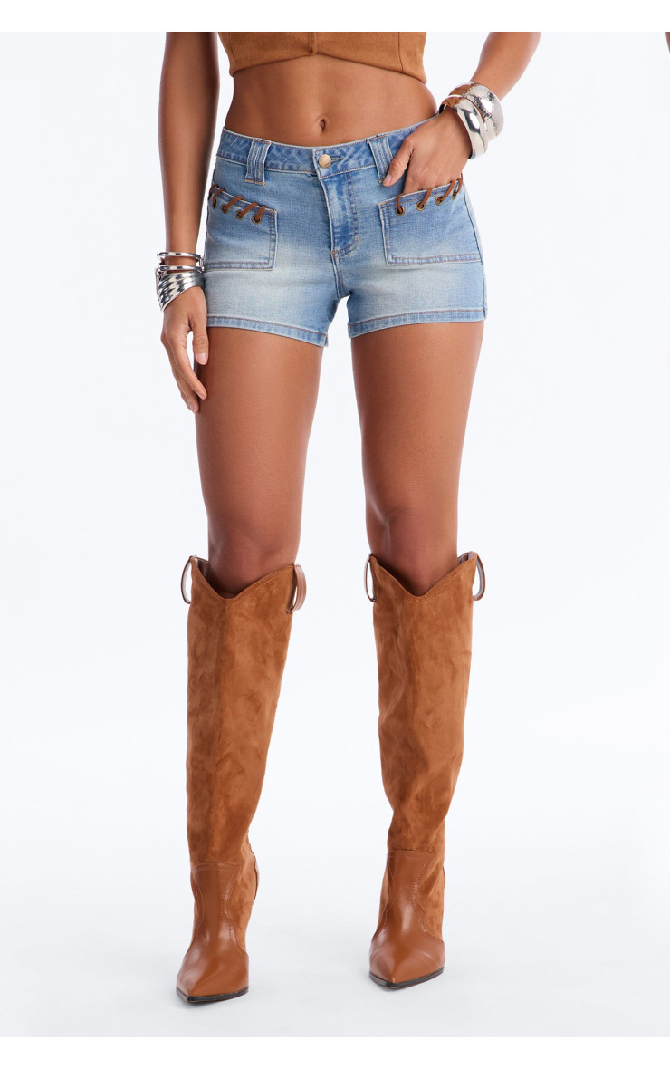 Денімні шорти "Вільний дух" з декоративним швом - Світлий відтінок