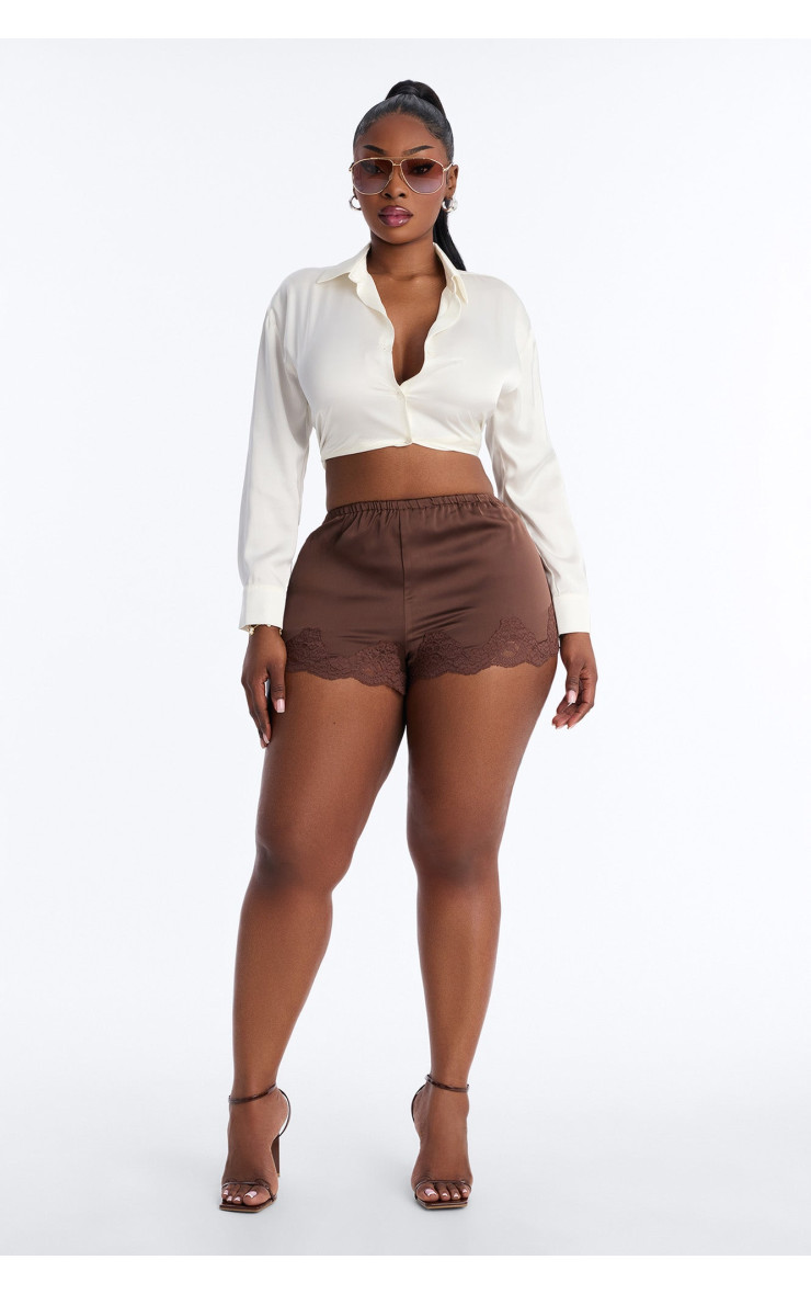 Відчуйте розкіш та комфорт з цими шовковими шортами "Найсолодша любов". Гладка шовкова тканина та насичений шоколадний колір створюють вишуканий та елегантний образ. Ідеально для створення спокусливих та витончених образів.