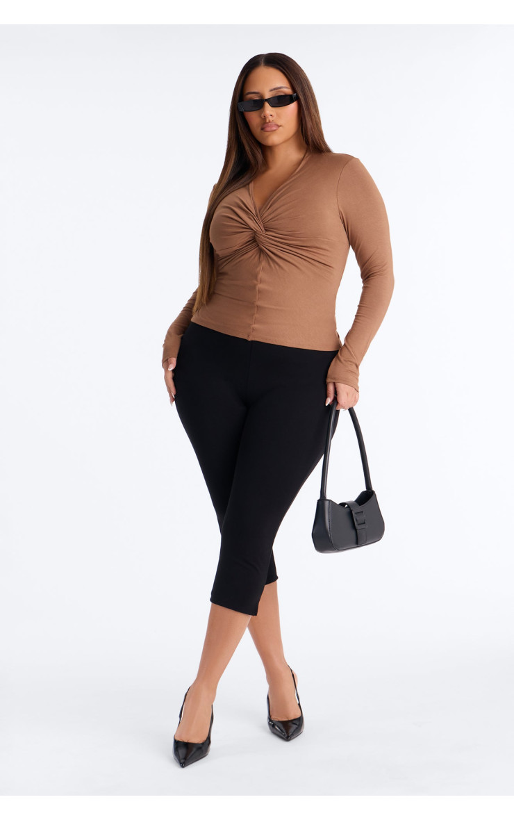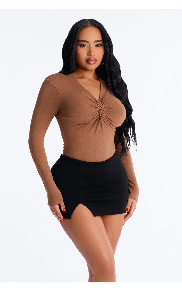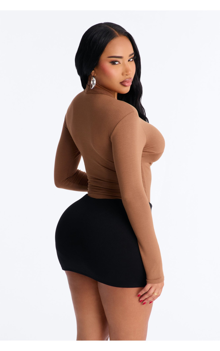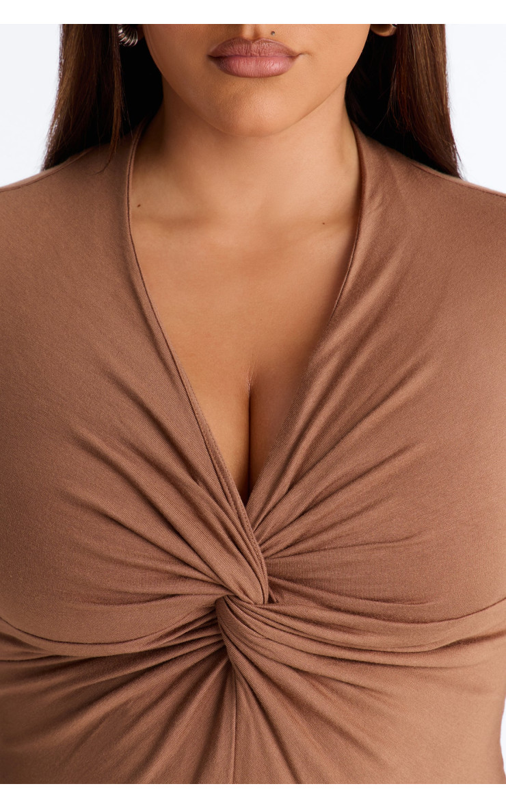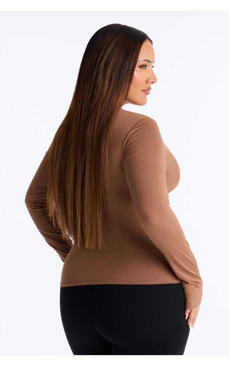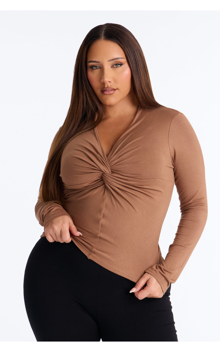 Топ "Pure Twist" з V-подібним вирізом та довгим рукавом - Мокко