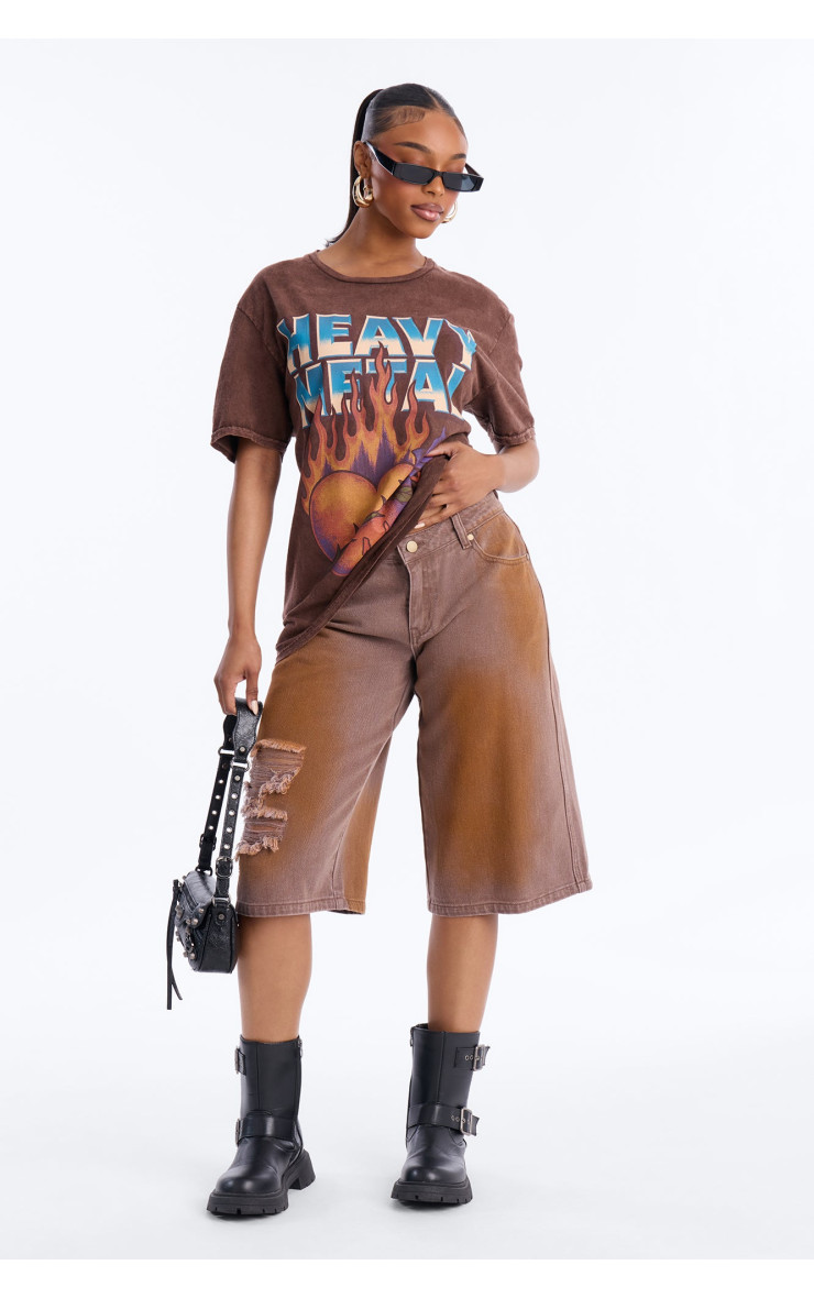 Виразіть свою пристрасть до важкої музики з цією футболкою "Heavy Metal Flaming Heart". Її яскравий принт та ефект прання додадуть вашому образу рок-н-рольного настрою. Виготовлена з м'якої бавовни, вона забезпечує комфорт. Ідеальний вибір для справжніх шанувальників року.