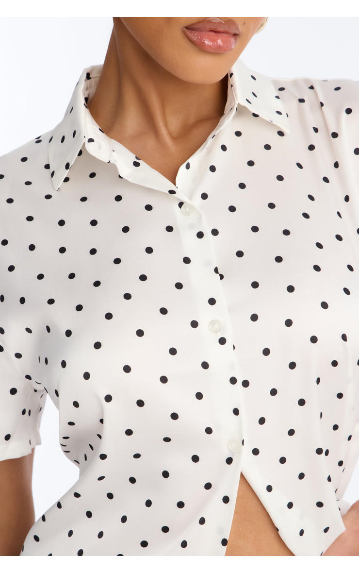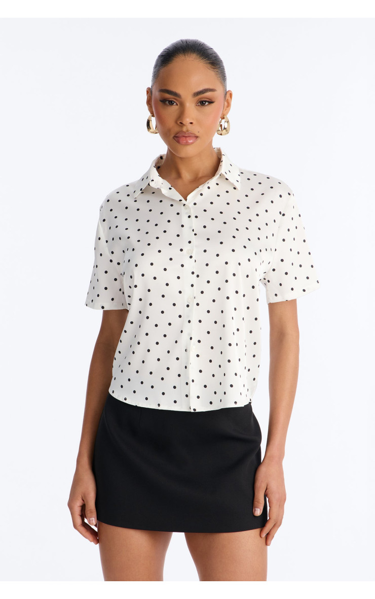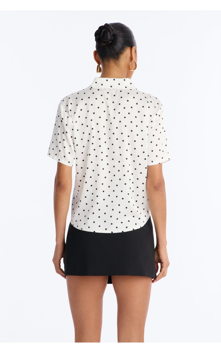 Ця чарівна сорочка "Whimsy" з вишуканим принтом у горошок стане яскравим акцентом вашого образу. Її легка тканина та вільний крій забезпечують комфорт, а елегантний дизайн додає грайливості та стилю. Ідеально підходить для створення невимушених повсякденних образів.