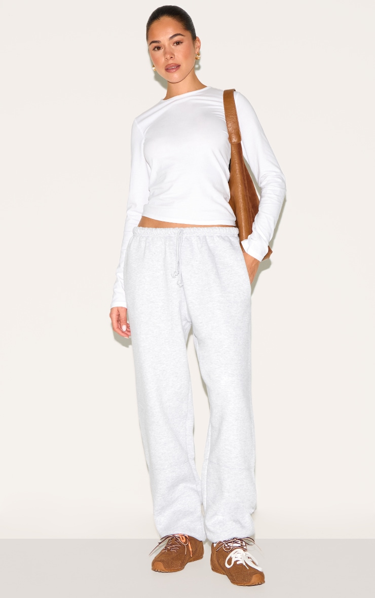 Виготовлений із сірого матеріалу з манжетними ніжками та деталями шва. З’єднайте ці попелясті сірі прямі ноги з манжетними швами деталі з заниженою верхньою рукавом з довгими рукавами та улюбленими тренерами для без особливих зусиль.