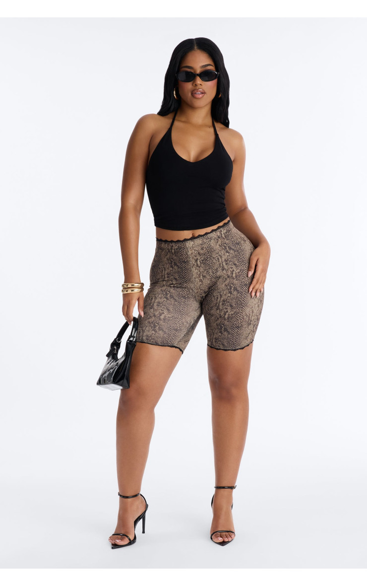 Шорти-байкери "Флорентина" з мереживною обробкою - Коричневий Комбо