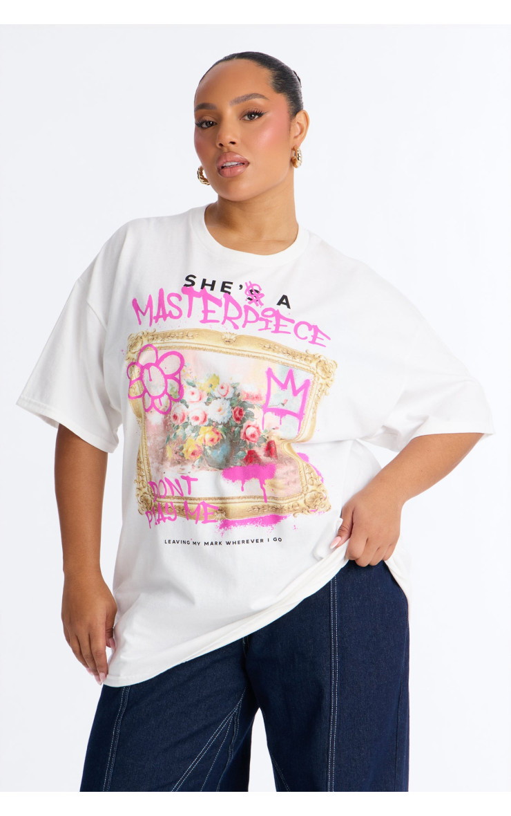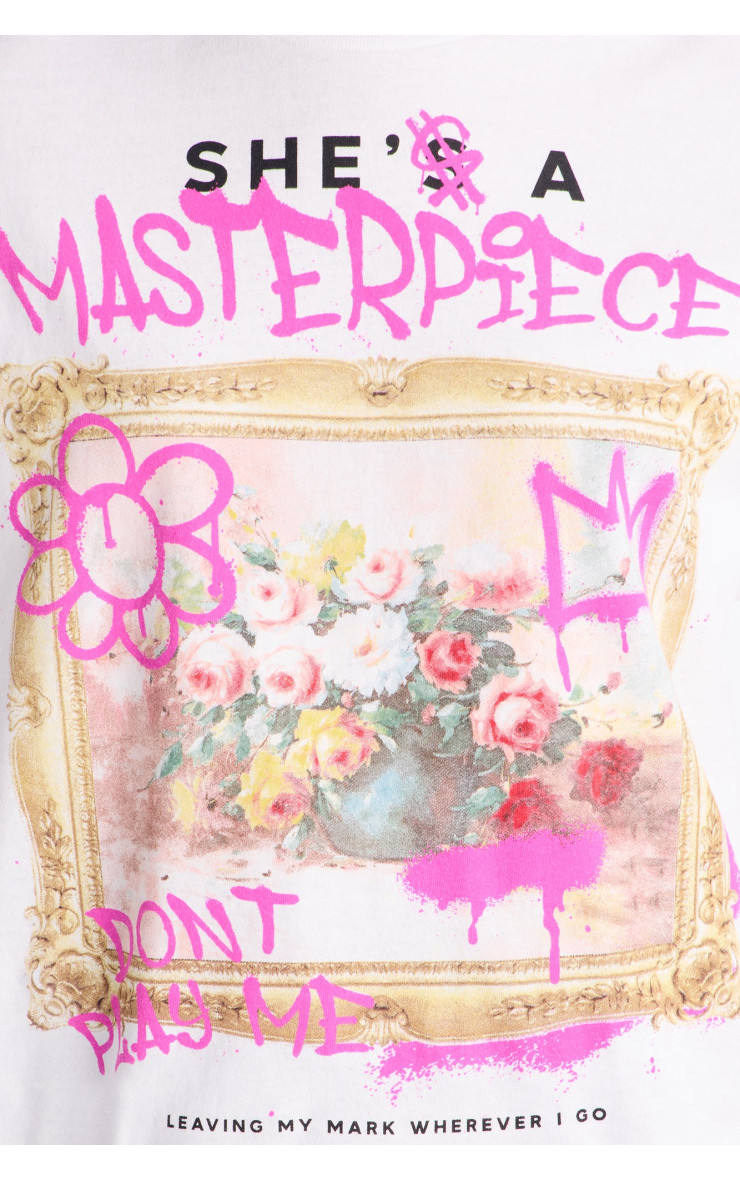 Ця футболка "She's A Masterpiece" — це втілення вашої унікальності. Її надихаючий напис та комфортний крій роблять її ідеальним вибором для тих, хто цінує себе. Виготовлена з м'якої бавовни, вона забезпечує комфорт. Підкресліть свою неперевершеність!